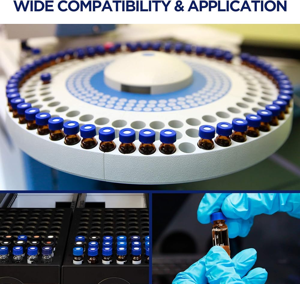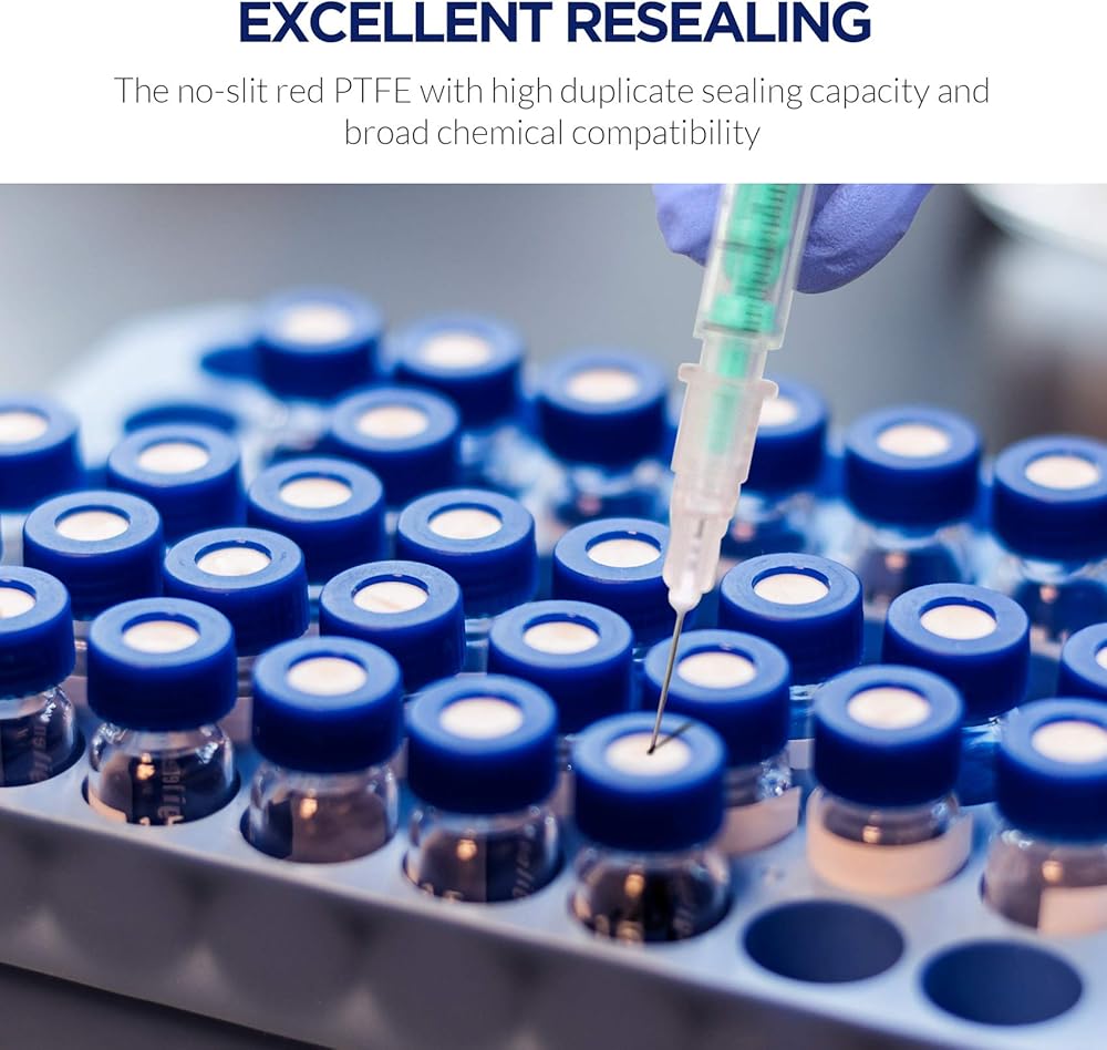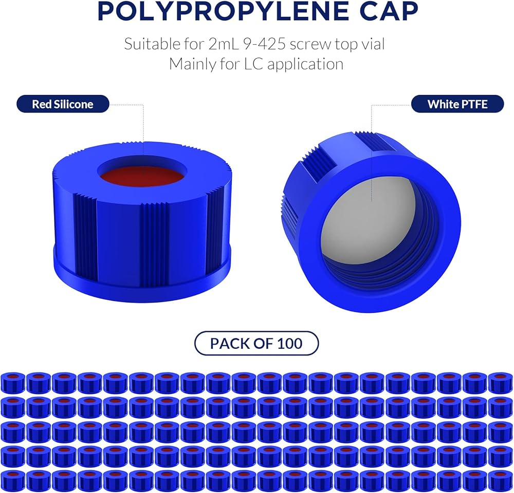 🧪 SEALED DESIGN & REUSABLE - Polypropylene screw cap with precision-fit septa provides an evaporation-proof seal. Bi-layer includes silicone and PTFE material. The silicone septa for multiple injections. PTFE-lined screw cap for organic samples.
