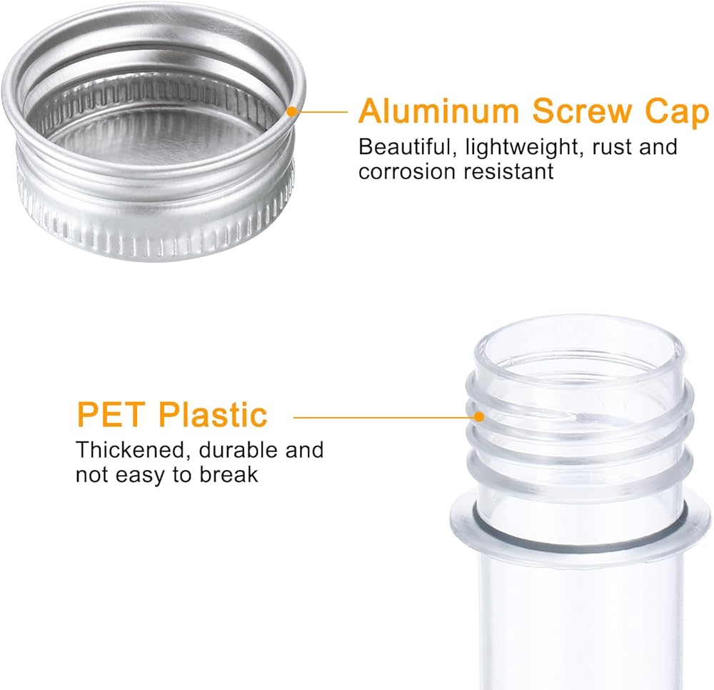 Sufficient Quantity: The package contains 120Pcs test tubes with aluminum caps, each size is about 140 x 25 mm/ 5.5 x 0.98 inch, and the capacity is 45 ml; Sufficient quantity can easily meet your daily use and replacement needs.