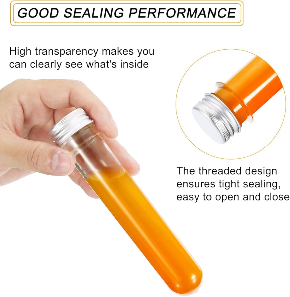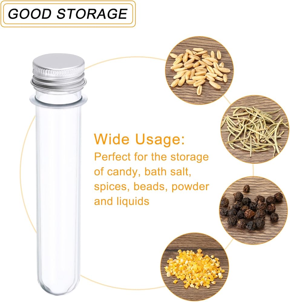 Application: These test tubes are perfect for the storage of candy, bath salt, spices, beads, powder and liquids; They can also be used in science experiments, party decorations, wedding decorations, classroom lab supplies, and more