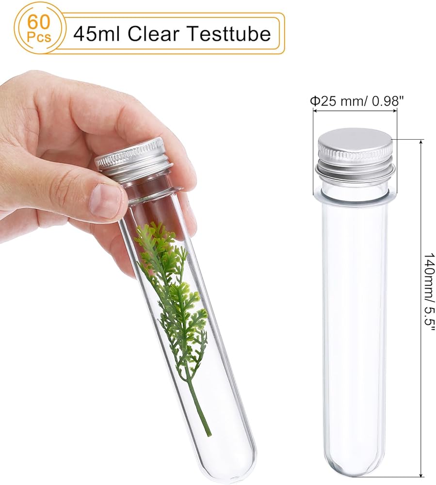 PATIKIL 60Pcs 45ml Plastic Test Tube with Screw Caps, 140x25mm Tubes Aluminum Lid, for Scientific Experiments Party Decoration Candy Bead Storage Bath Salt