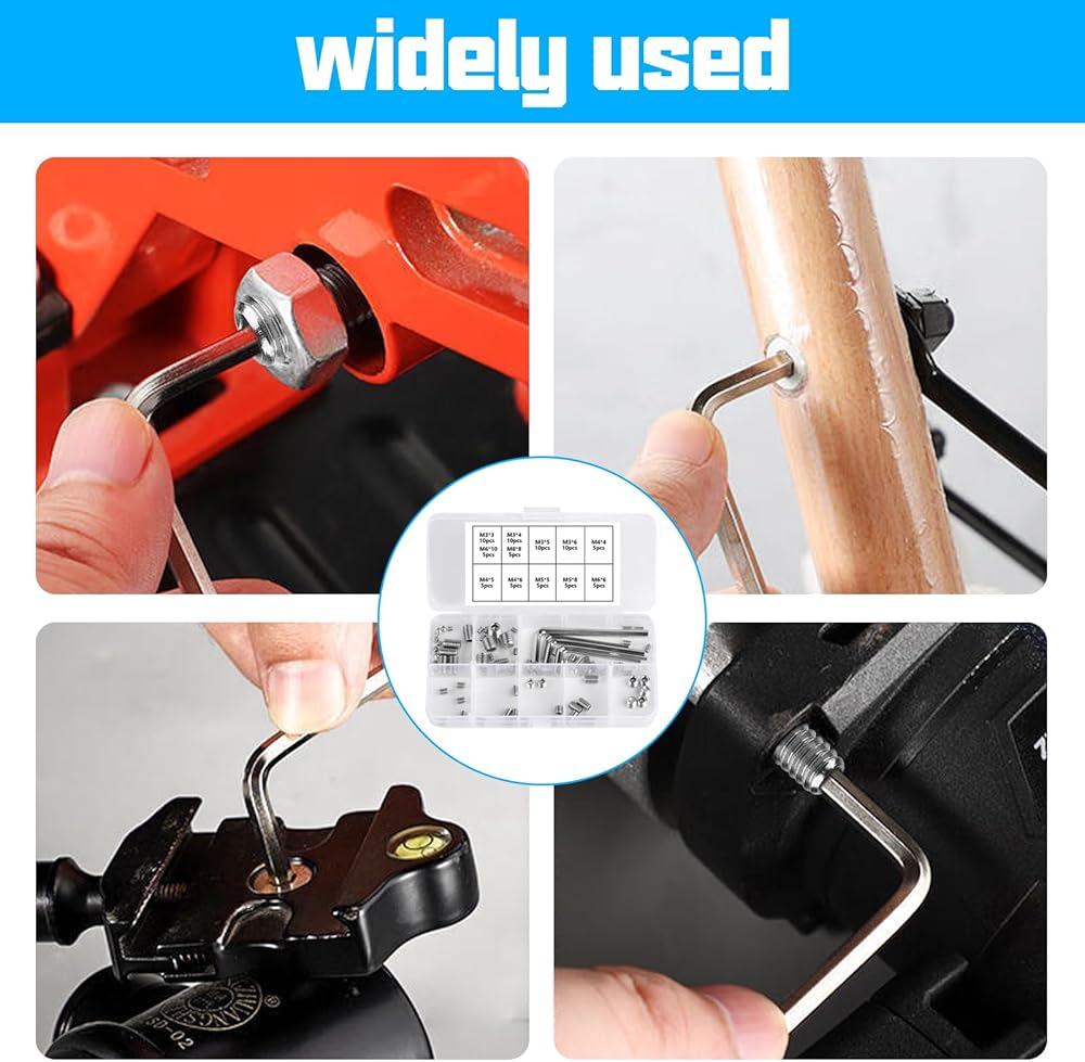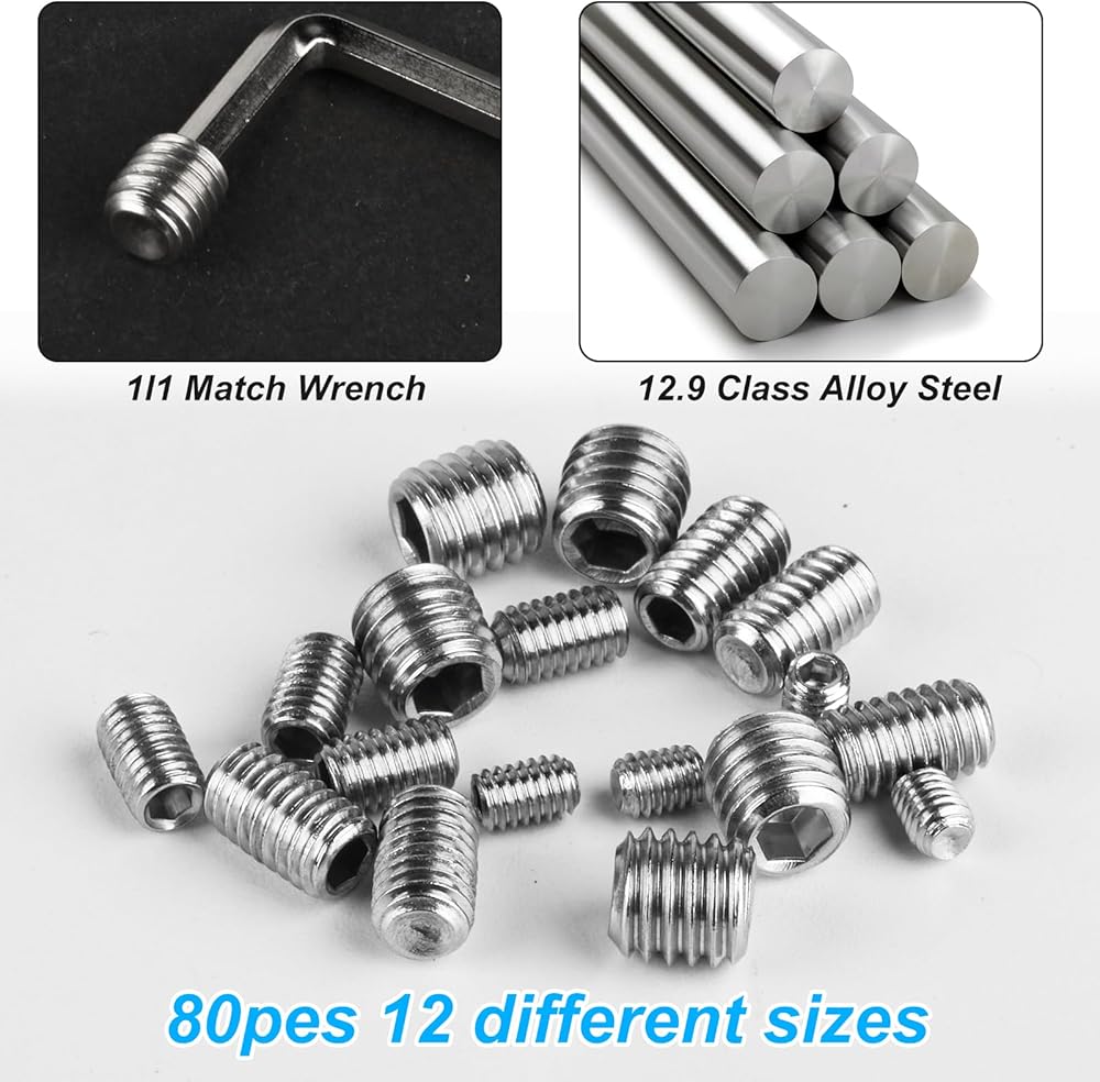 Easy to Use: The hex socket screws have uniform force, no offset, not easy to slip. With the uniform pitch, no sharp edges, obvious screw thread, no residual burrs, the set screw threads will be able to get a good grip.
