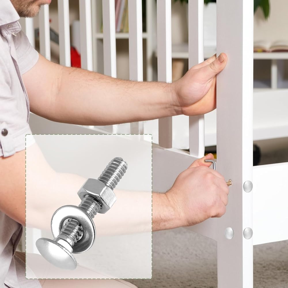 【Wide Application】Sturdy carriage bolts and nuts kit make installation easy and convenient. Securely fasten your furniture, garage doors and other fixtures with these large, sturdy bolts and nuts, perfect for securing headboards, footboards, doors, bed frames and more.