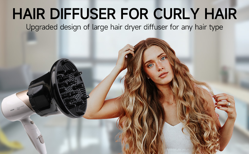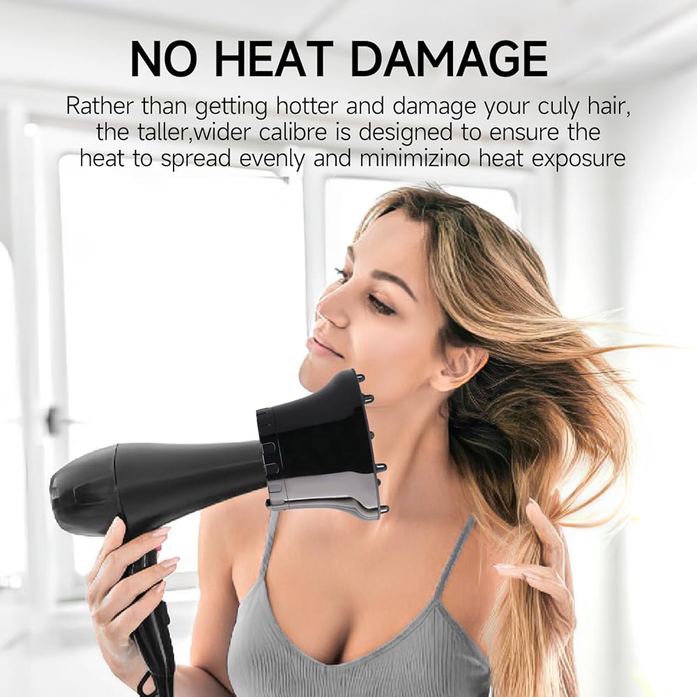 🍃This universal diffuser attachment for hair dryer with the hair blow dryer diffuser attachment special "fingers" gently lifting the hair. The diffused heat from the hair diffuser attachment can quickly and effectively dry the hair in a gentle manner, preserving its natural texture. Moreover, the universal diffuser attachment for hair dryer will not damage your curly hair. The diffuser attachment for hair dryer is for natural curls, bouncy waves, as well as straight hair.