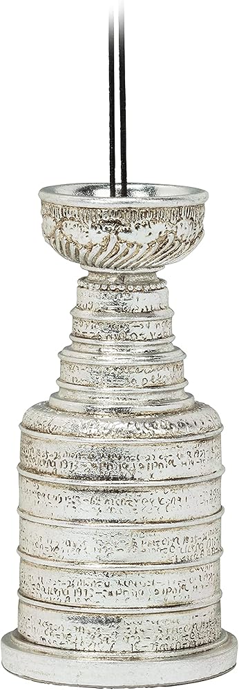 Celebrate the holiday season like a champion with this detailed Stanley Cup Ornament. Crafted out of resin, this miniature replica of Lord Stanley's Cup makes a wonderful addition to any hockey-loving household's Christmas tree.