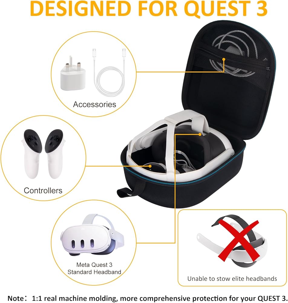 Hard Carrying Case for Meta Quest 3, Compatible with Meta Quest 3 Accessories, with ELITE Headband, Touch Controller and Other Accessories, Stylish Travel Design, Black (Black, S)