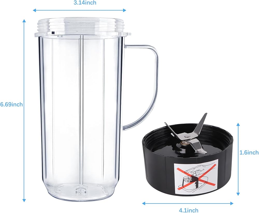 Magic Bullet Blender Cups ,Tall 22oz Cup with Handle Cross Blade Replacement Part Compatible with Magic Bullet Blender Juicer Mixer Accessories 250W MB1001