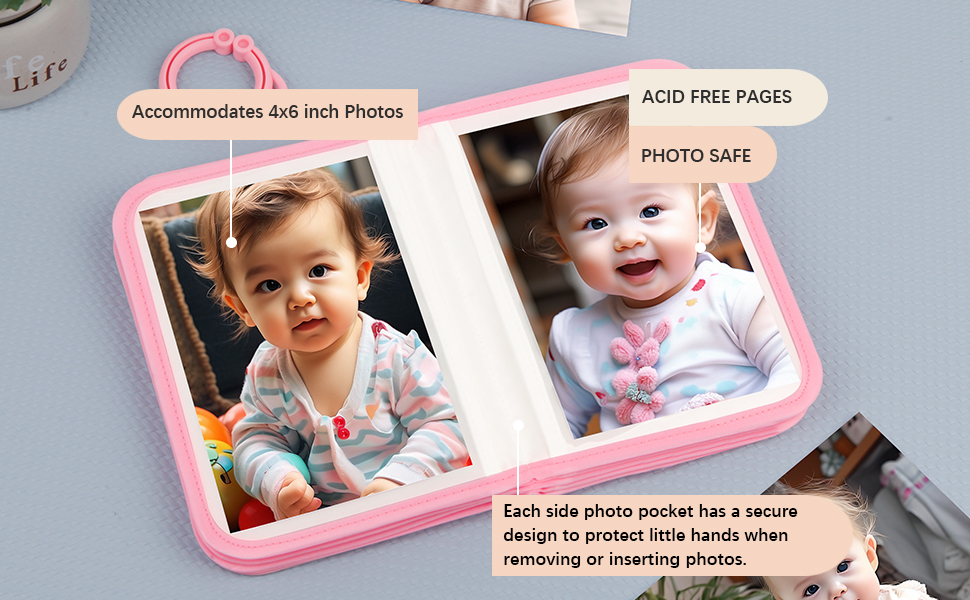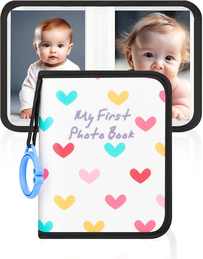 💗【FULLY FUNCTIONAL】- Baby photo book comes with an extra baby safety mirror and round plastic hook, baby safety mirror can inspire child's imagination & curiosity, and the plastic clip will allow it to be easily attached to a pram, bouncer or other item and not get lost.