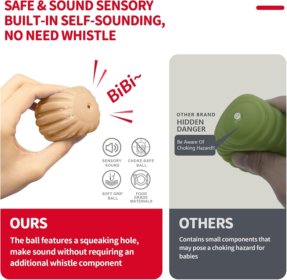🎁Thoughtful & Perfect Gift: Whether used as montessori sensory toys for babies or as soft teether toys for infants, our sensory balls for toddlers 1-3 make a thoughtful and perfect gift for babies 6 to 12 months. Their versatility, safety, and developmental benefits make them an ideal choice for any parent seeking a meaningful and engaging toddler balls for their little one.