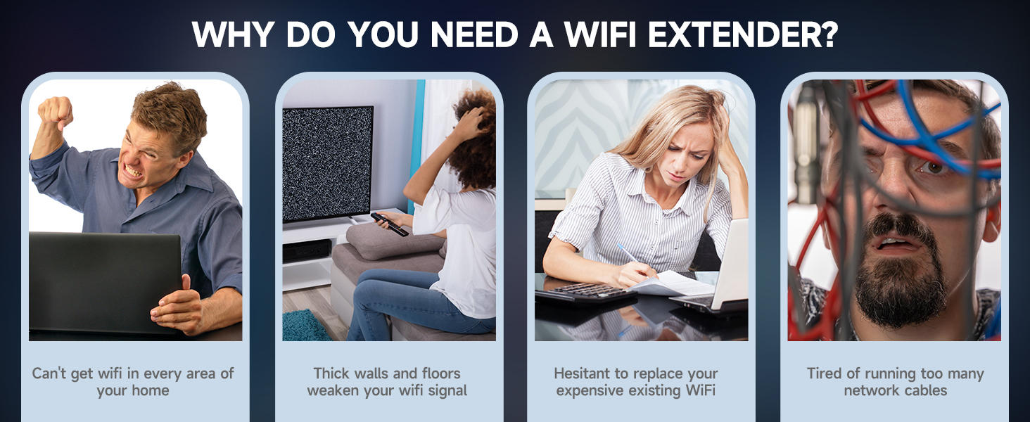 Eliminate Wi-Fi Dead Zones: UPPOON home wifi extenders boosts your wifi signal covers up to 9980 sq.ft and 50 devices with 4 high-gain antennas, which can fix the dead zone. Sending your router network signal to every corner of your house
