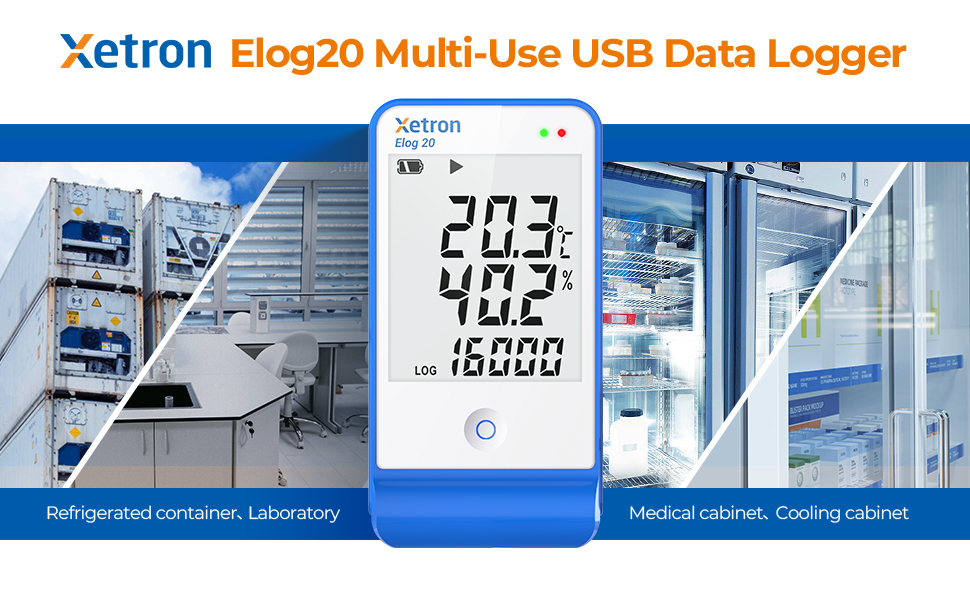 Elog20 Temperature Humidity Data Logger, Waterproof Temperature Recorder with Detachable Buffered Probe, Fridge Temperature Logger up to 16000 Points,PDF Report,This Year's Latest Production