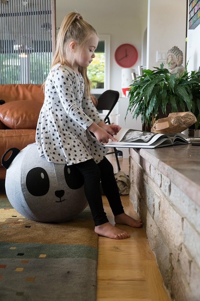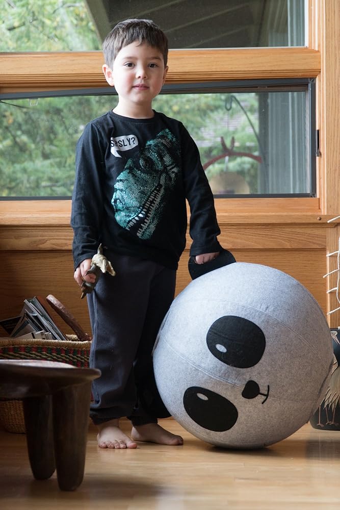 Niko is a cleverly designed, inflatable, active sitting companion with character that everyone should try! Niko is different than other sitting balls because its rigid spherical case provides a solid yet comfortable sitting base that helps you get your wiggles out while you sit so you can concentrate on what's in front of you – fidgeting, bouncing, and rocking is encouraged! Niko frees the user from a traditional, sedentary seating experience and allows for all kinds of natural body movements and adjustments so that the user engages their core and leg muscles. This way you can expend some physical energy while staying mentally focused! Niko is a breeze to set up and comes with everything included in the box. Just insert and inflate the inner ball with the provided pump, insert the included air plug, and start enjoying your new seating companion! Since Niko is extremely lightweight and thanks to it's adorable ear handles, Niko is always up for a trip to a friend's house or wherever else you want to bring your chair buddy! Despite it weighing less than four pounds, Niko's self-standing case keeps it from rolling away when you're not using it! Even on slick surfaces, Niko is at home with its clever, built-in, non-slip base. When the work gets tough and the play gets messy, worry not – Niko's fine felt case is easily removable and machine washable! When the work gets tough and the play gets messy, Niko's fine felt case gets clean in a jiffy! Don't fret about which size: Niko comes in two different sizes, 45cm and 55cm, and can fit anyone from 3'8” and up! See our sizing chart below for the right fit.