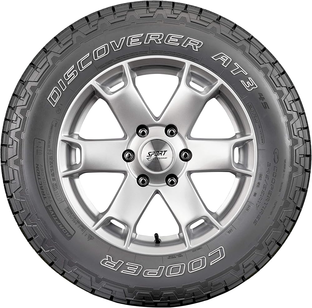 Made for rugged SUVs and light pickup trucks, the Cooper Discoverer AT3 4S All-Season 285/45R22 114H Tire is designed for all-season driving on the highway while offering exceptional all-terrain performance during weekend work or play on dirt or gravel roads. The Cooper Discoverer AT3 4S with Adaptive-Traction Technology grips the surface, rocky or smooth, under the most severe weather, rain or shine. It sets the standard in all-weather, all-terrain performance. It sports Adaptive-Traction Technology, an innovative silica-based tread compound with a design that adapts to a wide range of environments and temperatures for improved all-weather capabilities. The Adaptive-Traction Technology has many features, including Snow Groove Technology, which traps the snow in the tread for superior traction, Secure-Grip design, for greater off-road capability and traction, Aqua Vac Channels, which improve resistance to hydroplaning, and Micro-Gauge Zigzag Sipes, which offer increased stability and control. The Cooper Discoverer AT3 4S also offers a Best-In-Class All-Terrain warranty of 65,000 miles and 45-day test drive. Worthy of your ride!