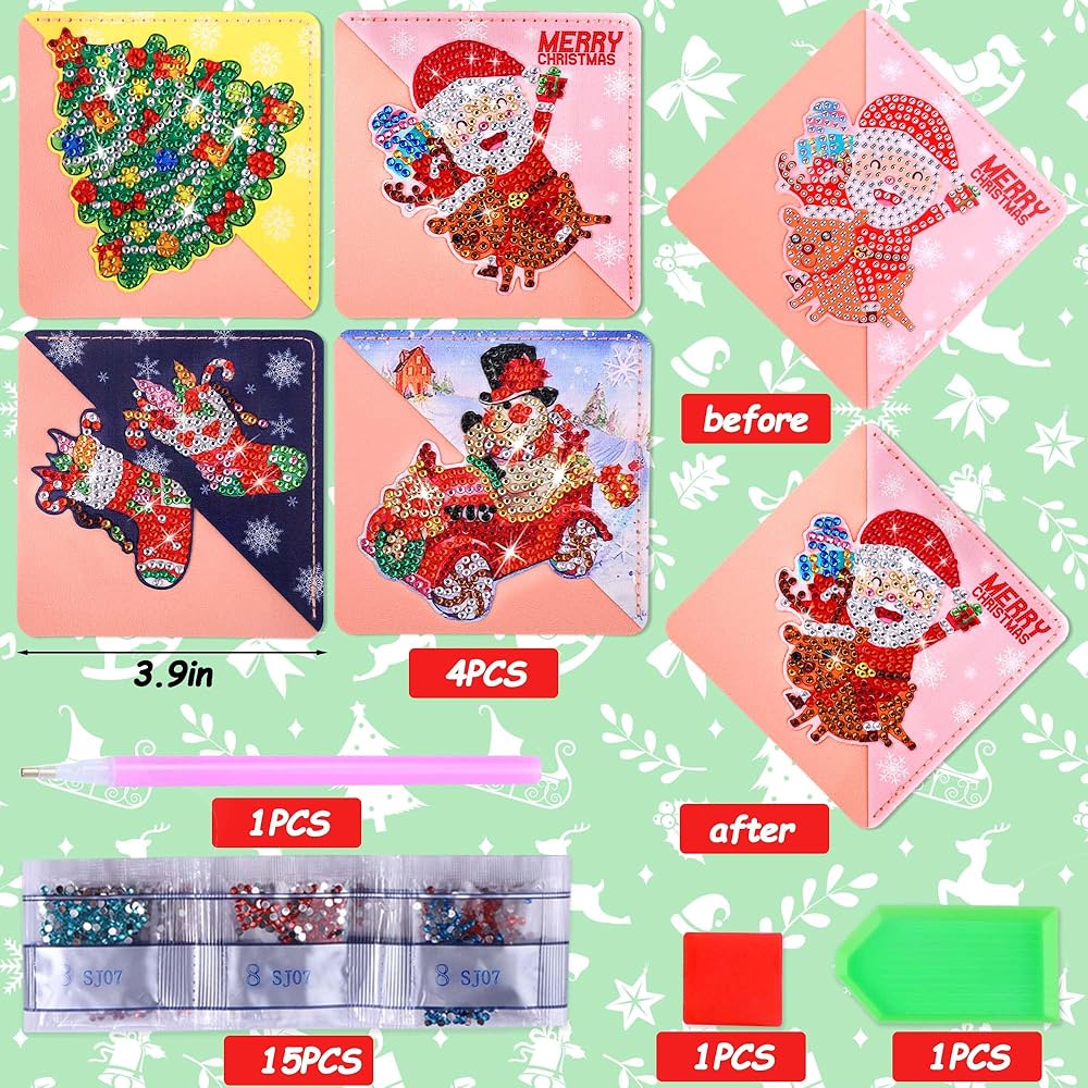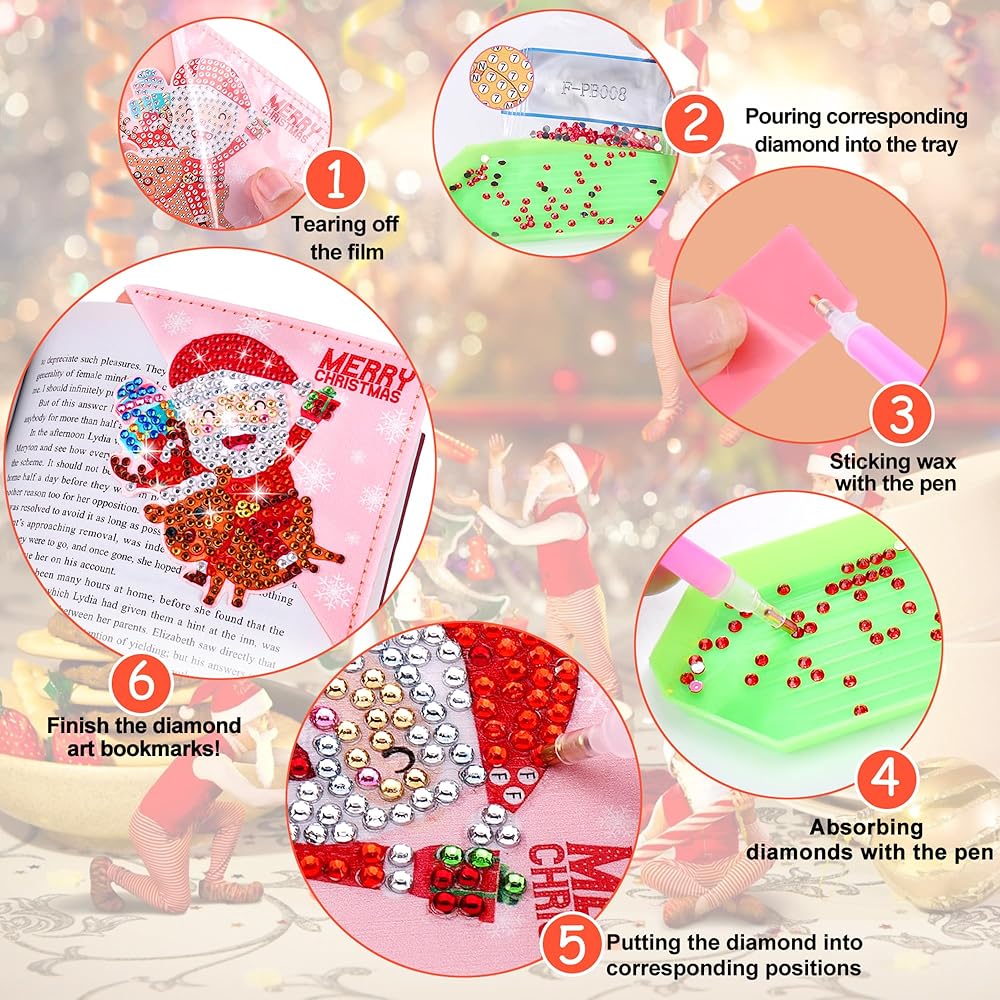 Christmas Diamond Art Bookmarks, 4 PCS Cute Diamond Art Bookmarks for Book Lovers, Christmas Gift DIY Diamond Art Accessories, Diamond Art Kits for Adults