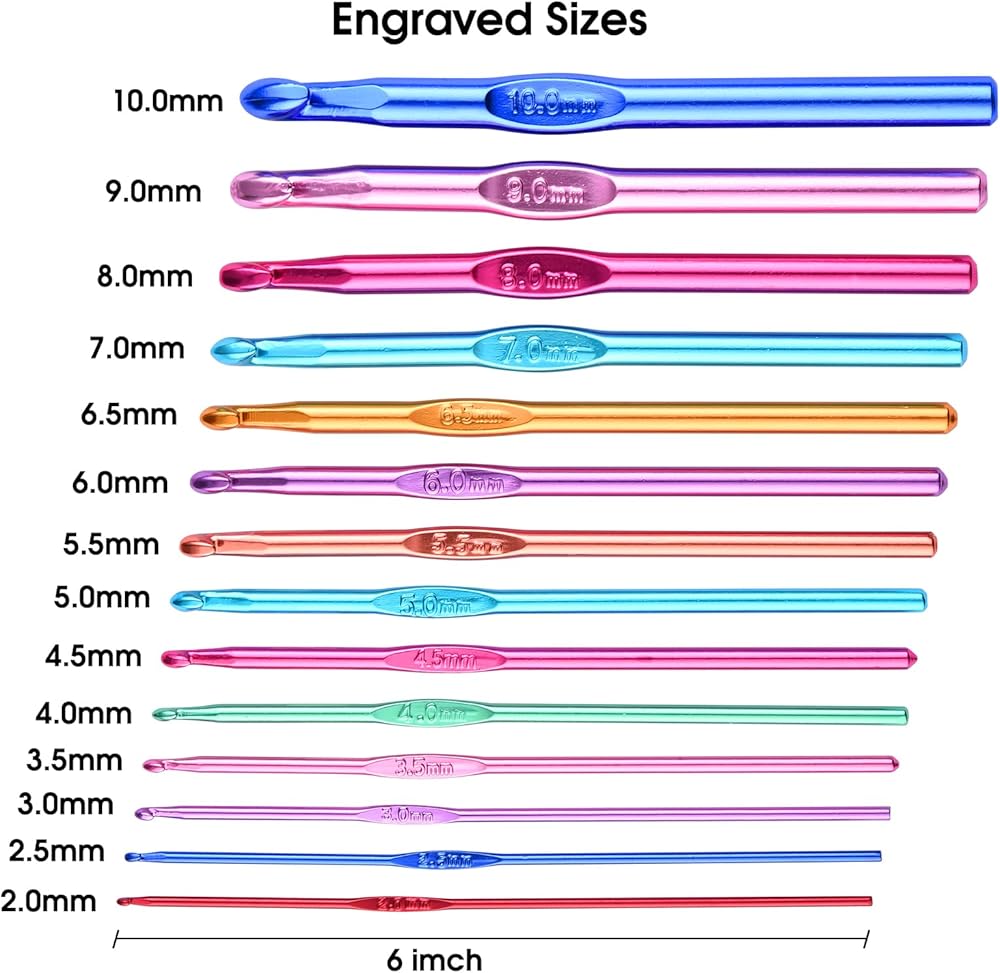 Extensive size selection: The crochet hooks includes a total of 14 crochet hooks, providing a versatile range of sizes from the smallest at 2mm, perfect for fine lacework and amigurumi, to the largest at 10mm, ideal for creating chunky blankets and scarves. This wide variety ensures that you have the right hook for any project.