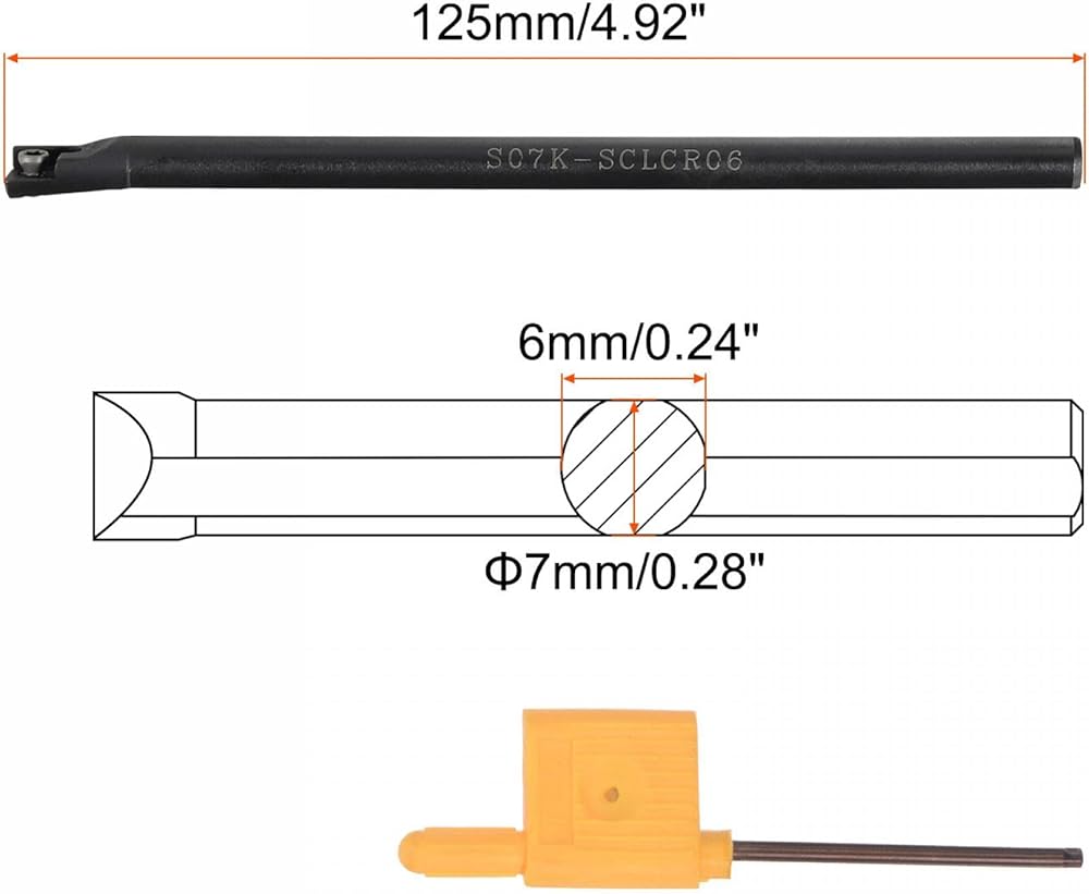 You will receive 1pc S07K-SCLCR06 7x6mm/0.28x0.24 inches shank diameter lathe turning tool holder and 1pc T8 wrench.