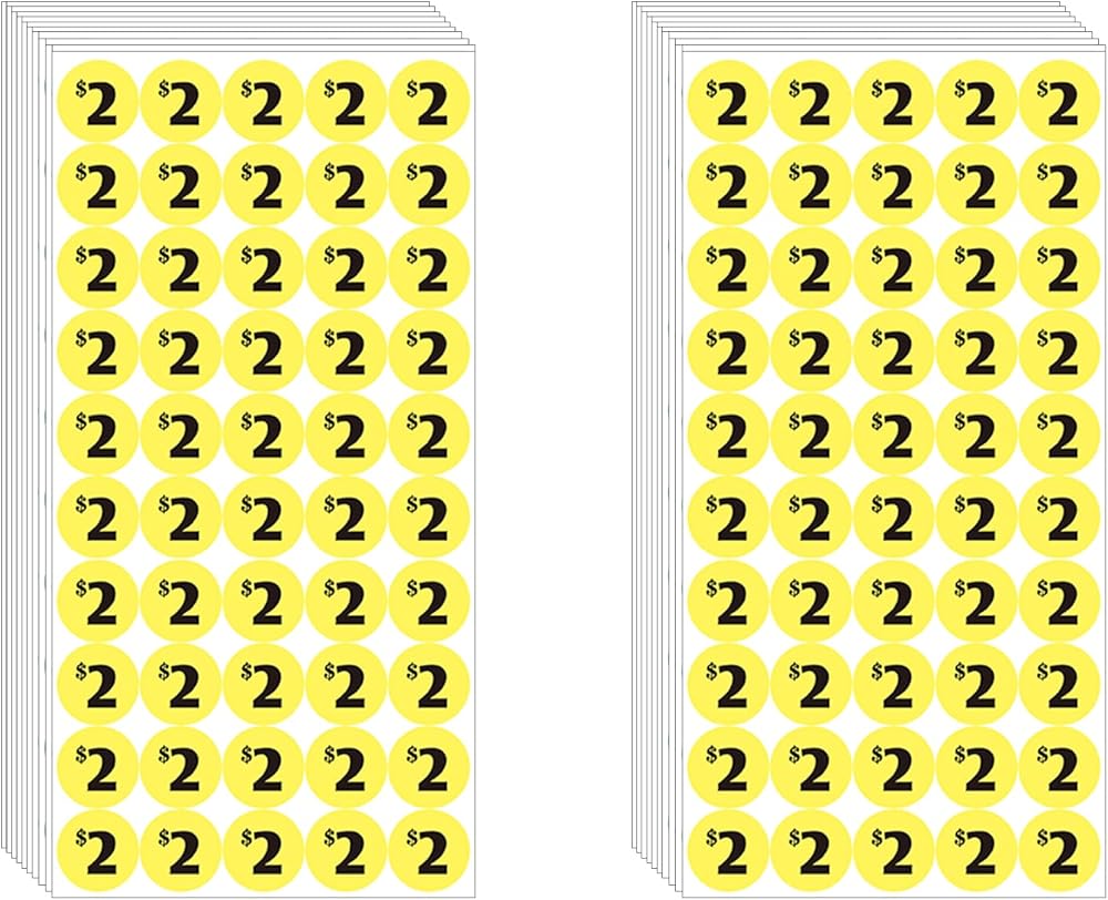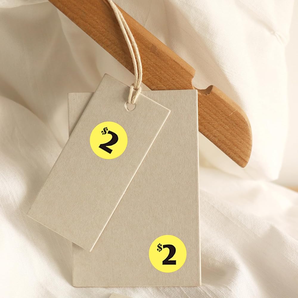 Make pricing your garage sale items easy with these preprinted garage sale price labels. The package includes 40 sheets of 50 stickers each, for a total of 2000 stickers in different eye-catching colors. With preprinted prices ranging from 10 cents to $50, plus additional blank labels for custom prices, organizing your sale has never been simpler. The stickers are 3/4 inch in diameter and peel off easily, making them the perfect choice for garage sales, flea markets, bake sales, yard sales, and more. Plus, the water-based ink is eco-friendly and dries quickly, ensuring no mess. The removable adhesive ensures that buyers can easily remove the price tag, so they can enjoy their purchases without any hassle. Don't let pricing your items be a headache - make it fun and simple with these preprinted garage sale price labels.