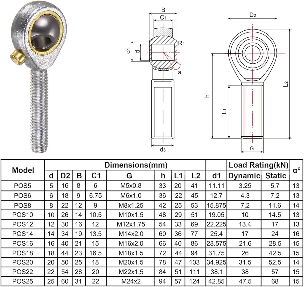 Material: Constructed from #45 steel rod end body and hardened bearing steel ball joint for extended service life and durability.
