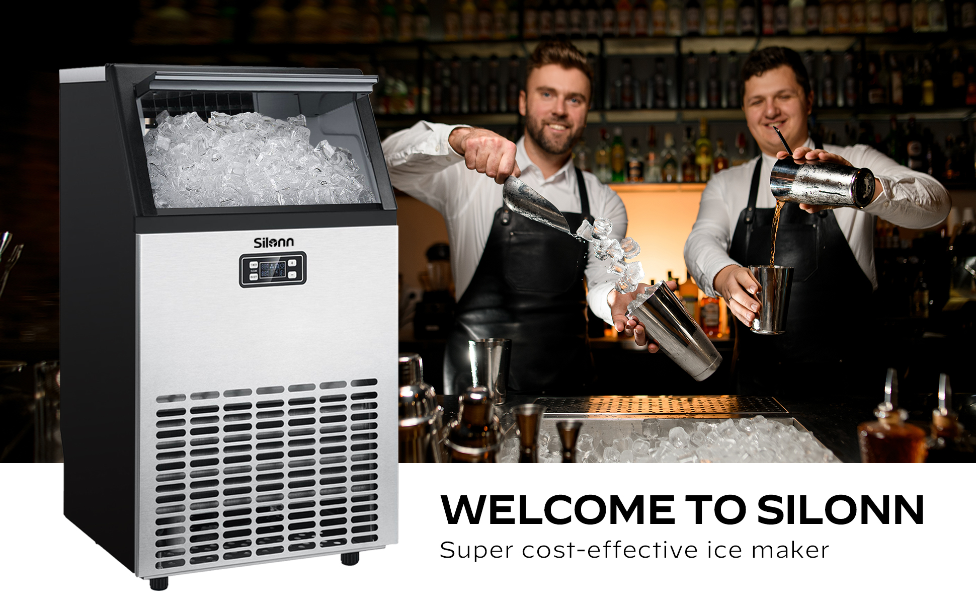 • GIGANTIC ICE QUANTITY! –Silonn commercial ice maker can produce ice in just 8-15 minutes. With a creating power of 90-100lbs ice daily, that's a professional-sized punching bag. The high production rate ice maker will produce new ice faster, well enough for you to keep up the supply levels during busy times, this freestanding ice maker machine can easily sustain the house, kids, and outdoor parties. Saving you money and time.