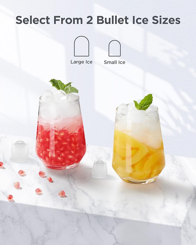 • PURE CLARITY ICE QUALITY: Whatever the usage is for; Keeping food fresh, creating cold drinks, chilling beers, and champagne, it all comes true with an ice maker. Square ice cubes are featured with slow-melting, fine in shape, and pure in clarity and density which is popular in high-end bars, restaurants, and even convenience stores.