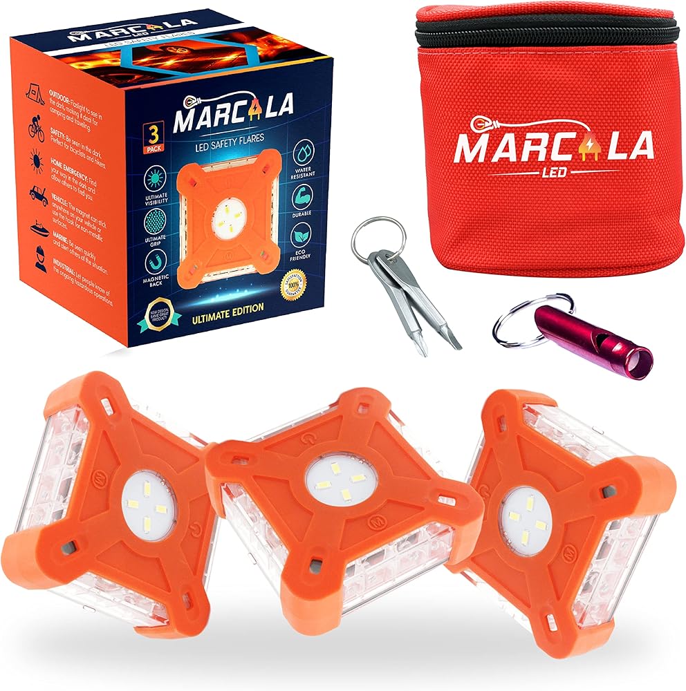 ✔️ SAY GOODBYE TO TRADITIONAL FLARES! Our non-burning roadside safety discs are easy to use, rechargeable, and safe for the whole family. Each kit includes 4 LED FLARES, 1 EMERGENCY WHISTLE, USB-C CHARGING CABLE, MANUAL, AND CARRY AND STORAGE BAG. Must-have for distress situations on the road, can also be used for camping, hiking, and boating emergencies. Perfect gift for young drivers, friends, and family!