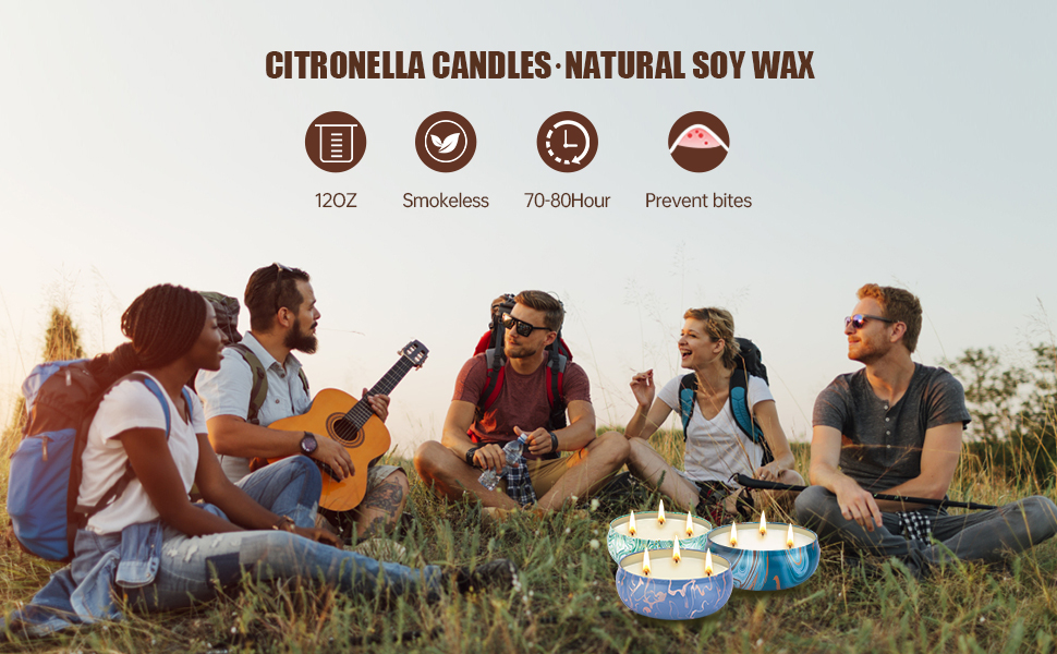 Long Lasting Burning Large Citronella Candle - 12oz per candle, each citronella scented candle can burn for 80 hours, the total burning time is up to 240 hours.