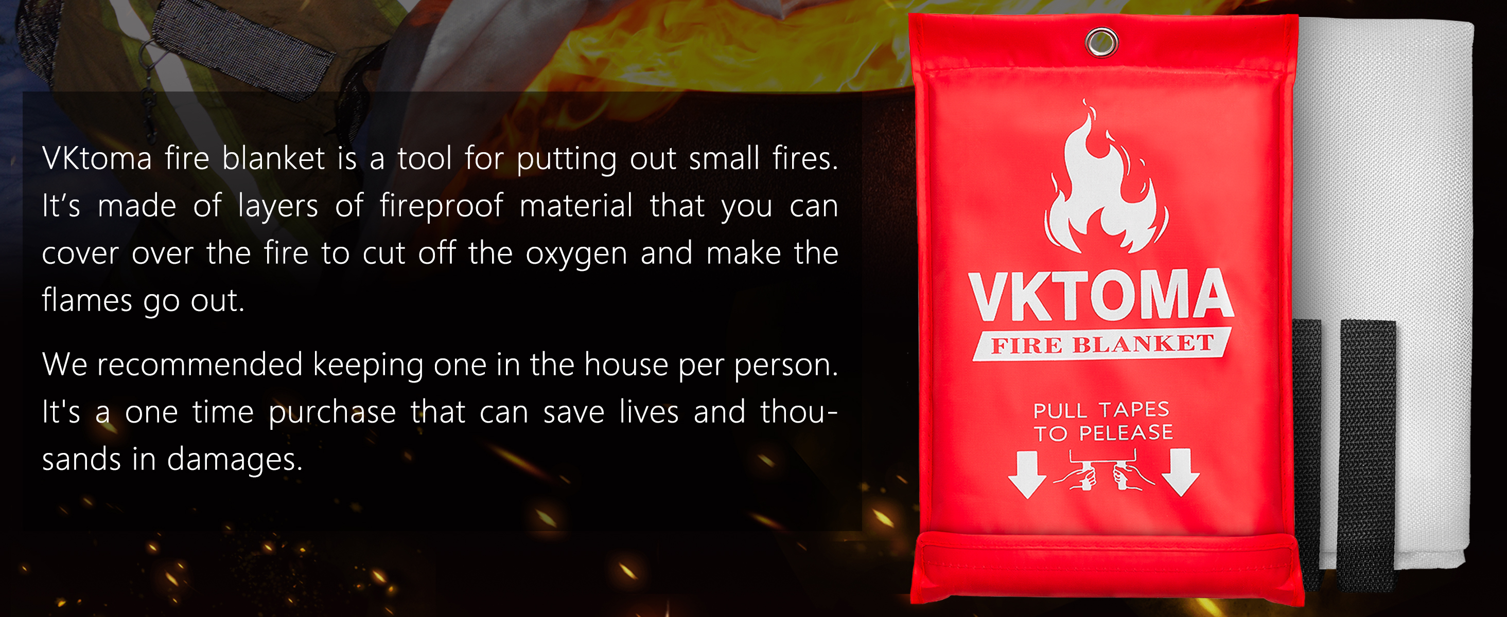 【DOES NOT EXPIRE】 The fire blanket never expires. That means unlike traditional fire extinguishers, it doesn't need to be replaced. As an emergency fire blanket, every family needs it, but we hope you never have to use it.