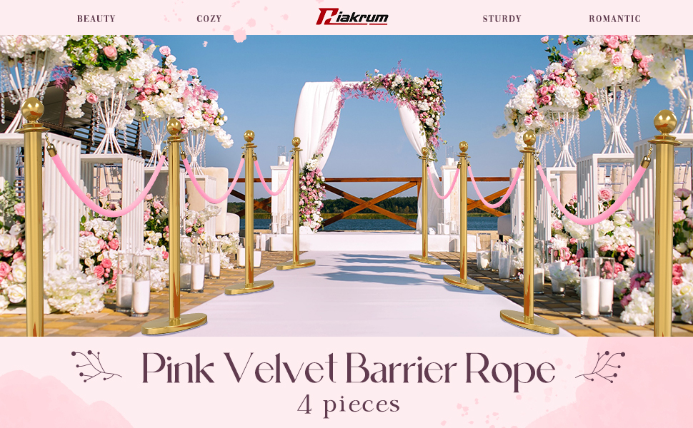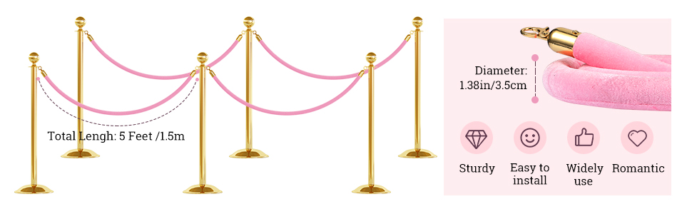 Reliable and Elegant: velvet rope is made of anti compression foam core inside and covered with pink velvet on the outside, comfortable to touch and high end in appearance, able to provide an elegant drape while remaining sturdy and long service life, adding a touch of romance to your event