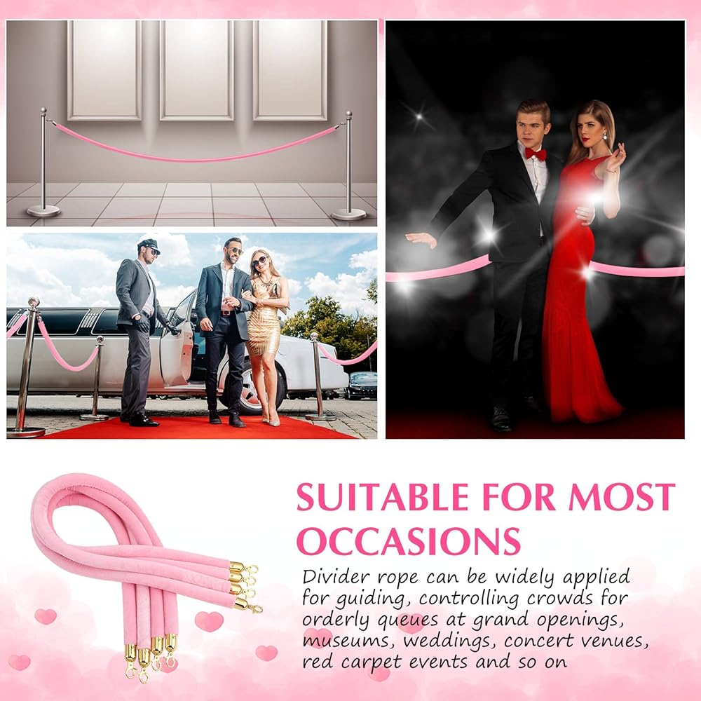 Sufficient Quantity: you will receive 4 pieces of pink velvet barrier ropes, the length is about 5 feet/ 1.5 meters, the diameter is about 1.38 inches/ 35 mm, fit most courtesy pole uprights, the sufficient quantity can fully meet the requirements of your event venue need