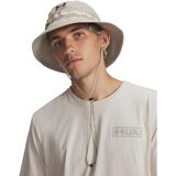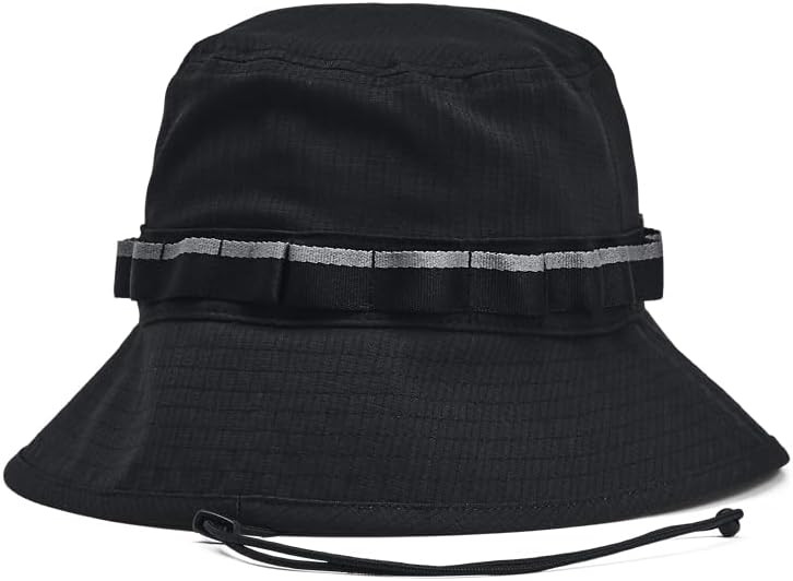 This hat was designed to keep your head cool by dumping excess heat through special vents that allow hot air out, but are small enough that the sun's rays aren't an issue. ArmourVent® Technology delivers ultimate breathability in a light, stretchy, durable & fast-drying fabric. Iso-Chill sweatband helps disperse body heat, making it feel cool to the touch. Adjustable drawcord ensures a secure fit. Textured webbing with color pop detail. Traditional bucket fit for a relaxed feel & extended brim for increased coverage. 100% Polyester.