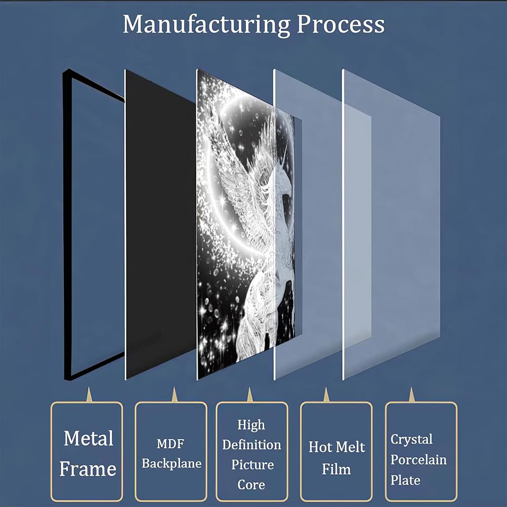 【Easy to Install】We come with a complete tool kit, two nails, a pair of gloves, a pencil and a measuring tape. Crystal porcelain paintings are packaged in safe and reliable packaging, with bubble bags and foam protective covers to ensure that the products are intact during transportation.