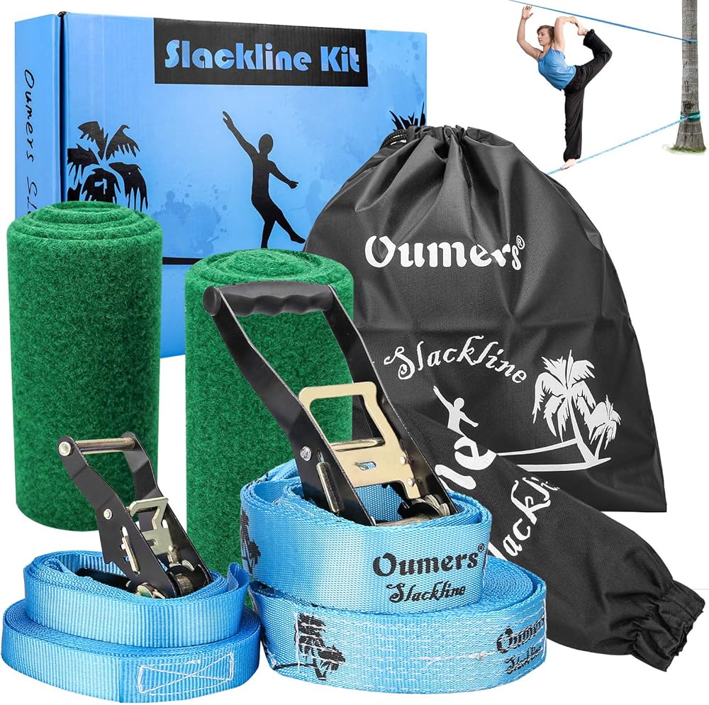Oumers slackline kit is ideal for the use in sports gyms and any training enviromen, let you easy to have fun with your kids and friends, and improve balance skills, core strength and coordination