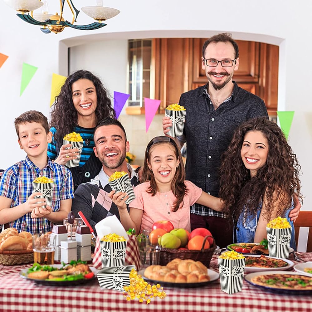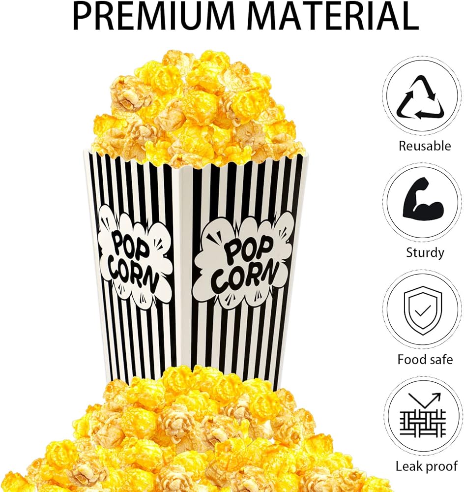 Convenient Operation: After the popcorn bags are in hand, popcorn bags don't need complicated assembly. The popcorn bags are flat, just open the top opening! The method is simple and easy to use