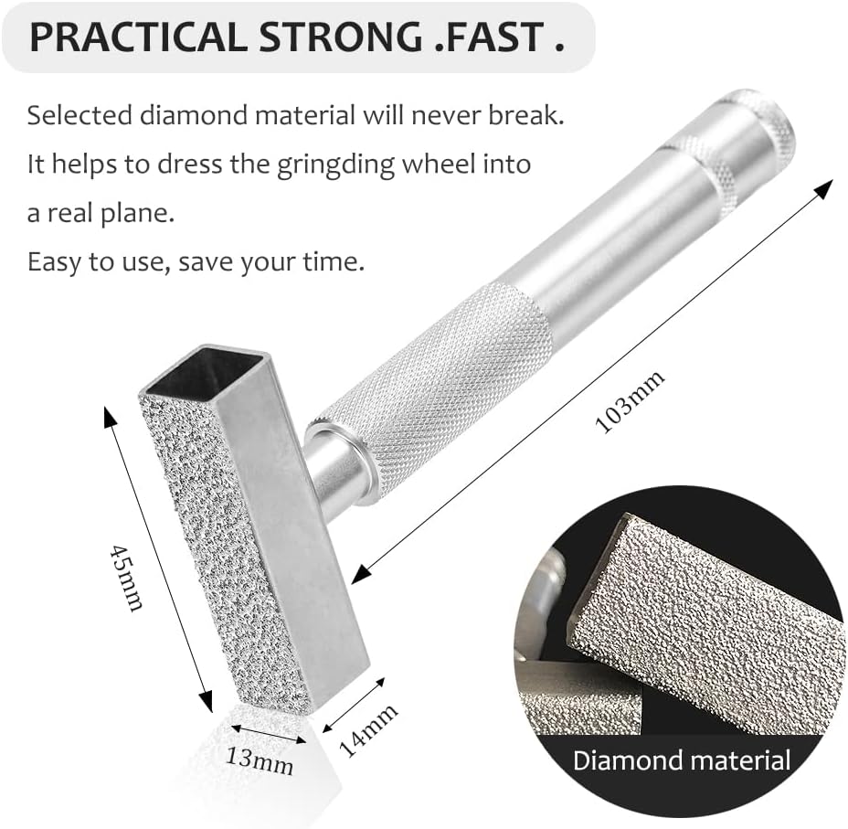 Reliable quality:The silver dressing stone of the grinding dresser is made up of an industrial-grade diamond matrix bonded onto a solid block of steel.