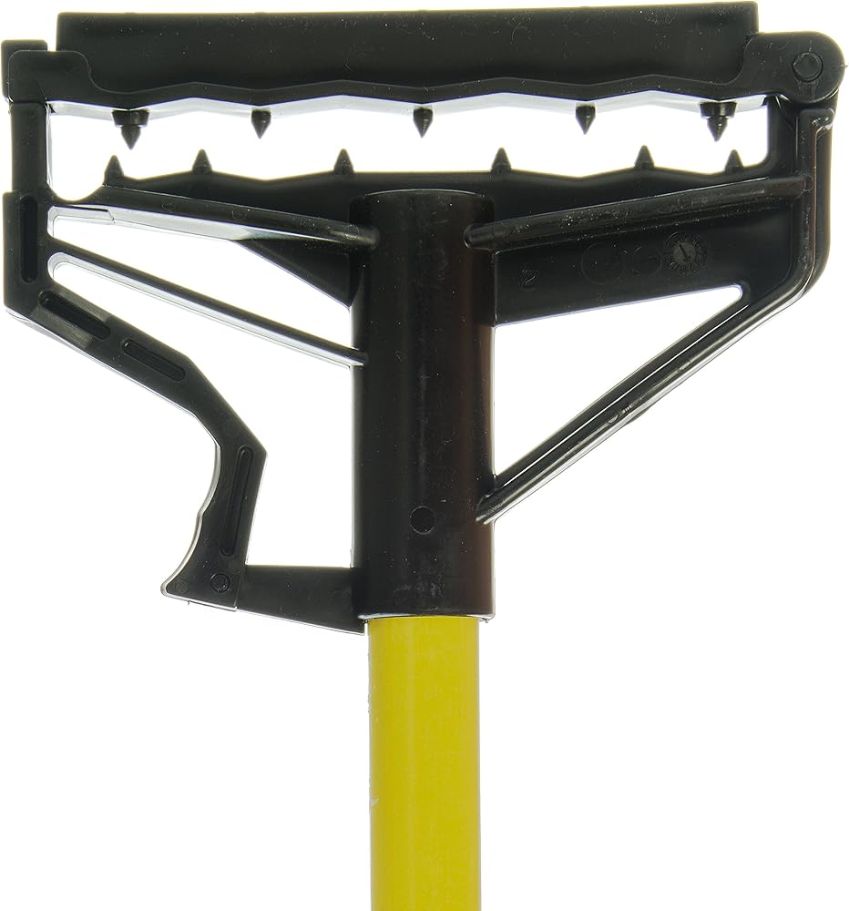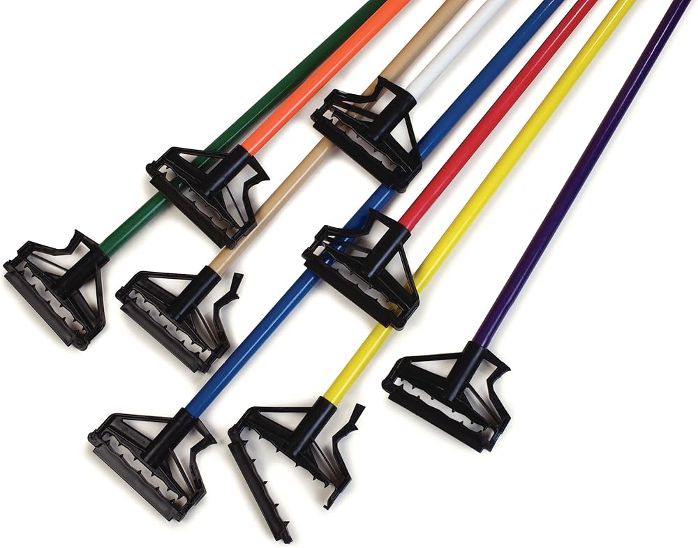Keep your floors clean while reducing contact with filthy mop heads using the Sparta® Spectrum® Quik-Release™ Fiberglass Mop Handle. This 60” mop handle features a flexible plastic head with a hinged gripper that bites into any size mop band securing it for maximum performance. The quick release allows you to detach the used mop band without touching it. Perfect for use in hotels, restaurants, hospitals, and more.