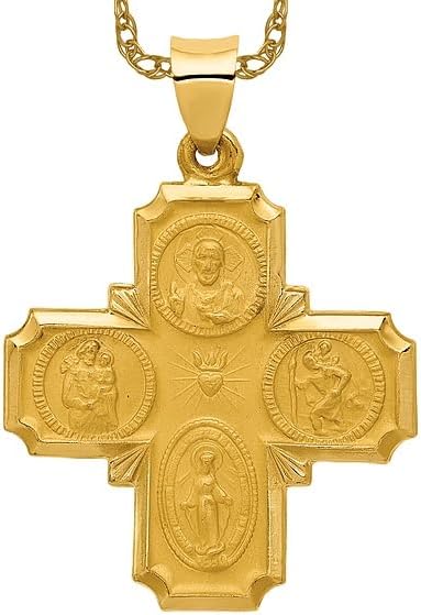 HAPPY November 2023 Jewelry Deals Limited Supply Get It Now Before It's Sold Out; Solid 14 karat Yellow Gold ; Length 34mm ; Width 24.5mm ; Hypoallergenic ; Gifts Jewelry Pendants Charms Religious Medals Four Way