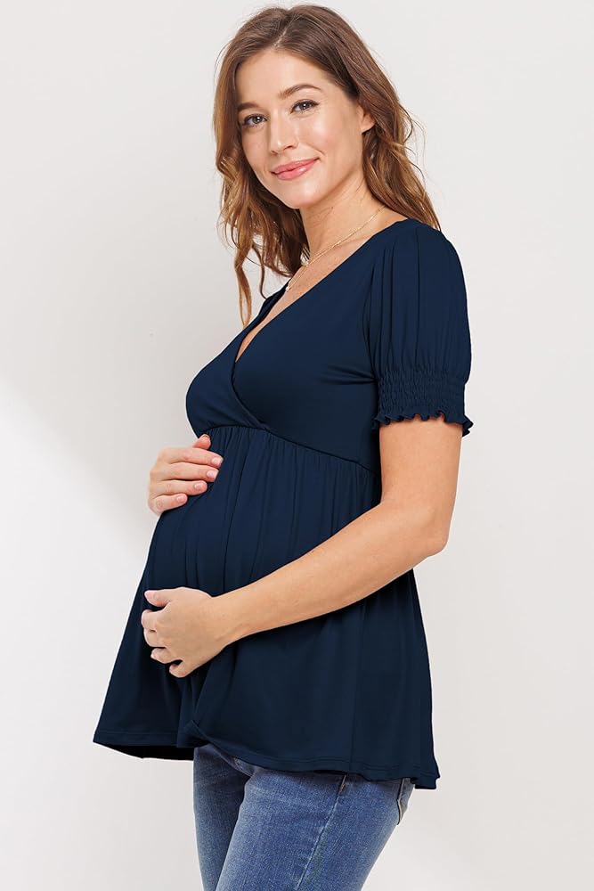 Casual short sleeve v neck wrap maternity nursing friendly top, simple design makes you look cute and the baby bump more noticeable in a cute way also enough flow to not cling to belly and plenty of room to grow