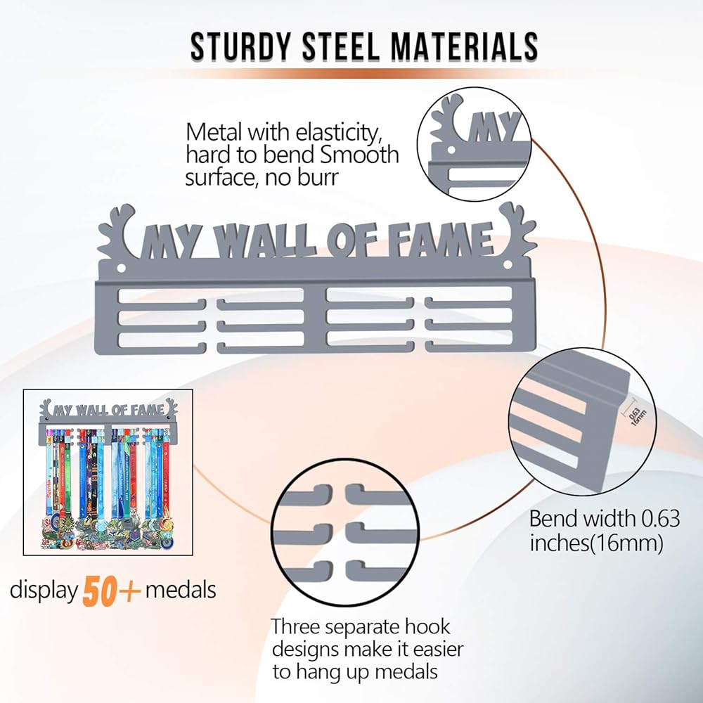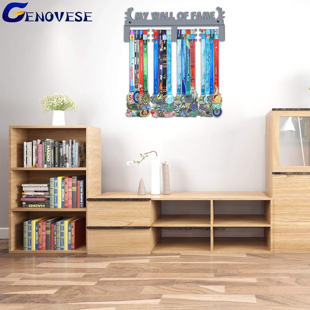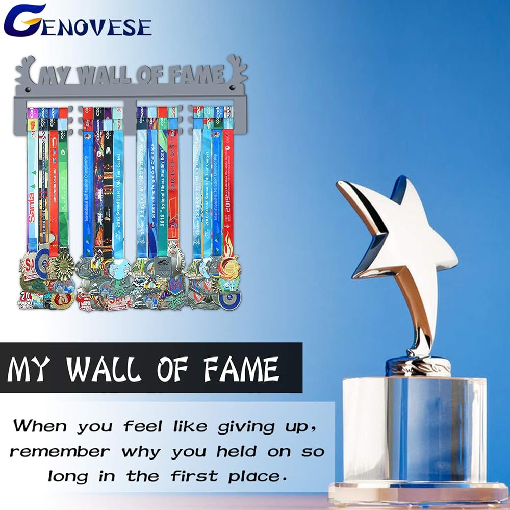 GENOVESE My Wall of Fame Medal Holder Display Hanger Rack,Sturdy Steel Metal,Wall Mounted Over 50 Medals Easy to Install