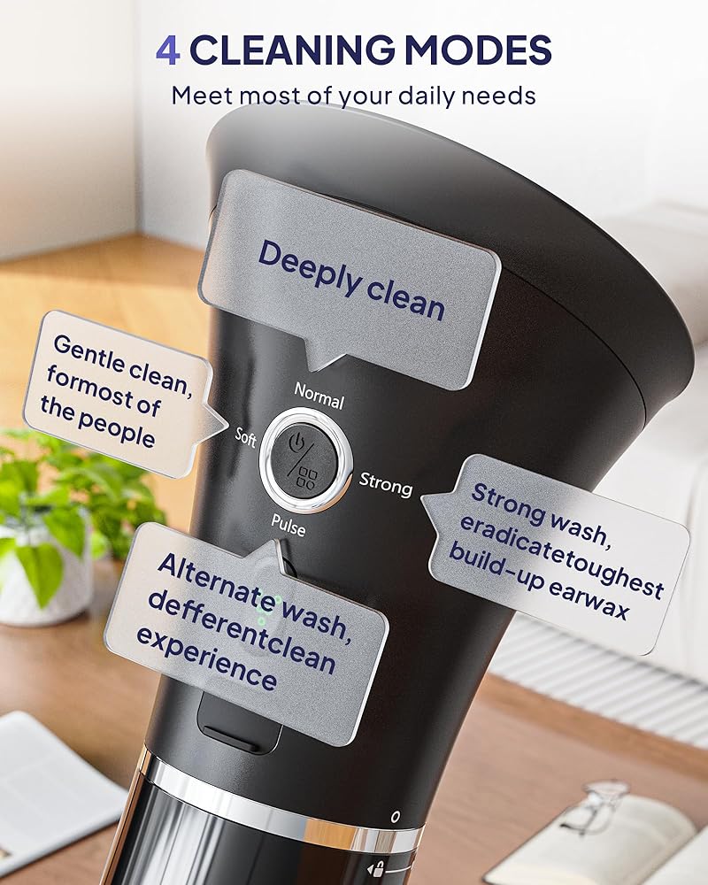 EFFECTIVE FOUR WATER PRESSURE SETTING - This triple jet stream ear cleaner offers four different pressure intensities to meet most of your daily needs. You can select the appropriate intensity by briefly pressing the Power/Mode button.