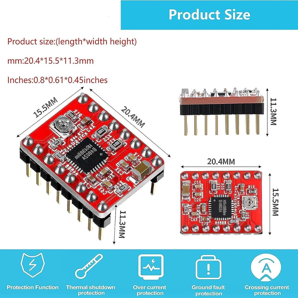 A4988 Stepper Motor Driver with Heat Sink, Suitable for 3D Printer Accessories of Mendel Huxley Arduino