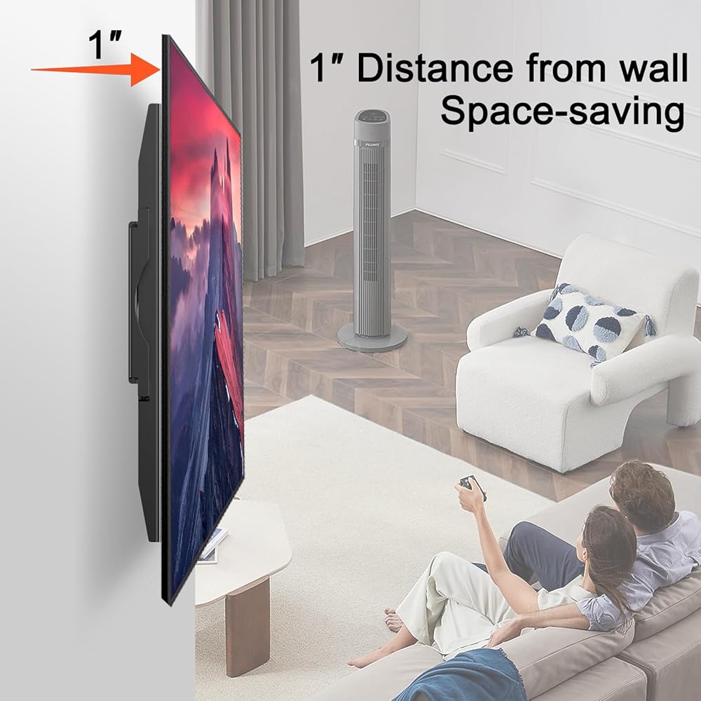 Low Profile TV Wall Mount : Only 1 inch from wall totally achieve a clean and streamline look that complements today's sleek TVs. low profile design make this wall mount combine with your TV naturally, saving space perfectly.