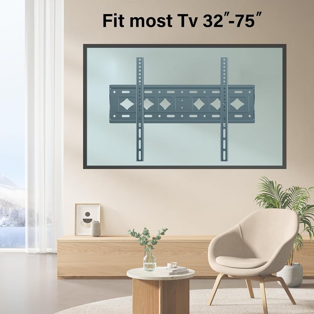 Fixed TV Wall Mount for Most 32-75 inch LED LCD OLED Flat/Curved PlasmaTVs, Low Profile TV Wall Bracket with Max VESA 600X400mm and Weight Up to 165lbs, Space Saving & Quick Installation