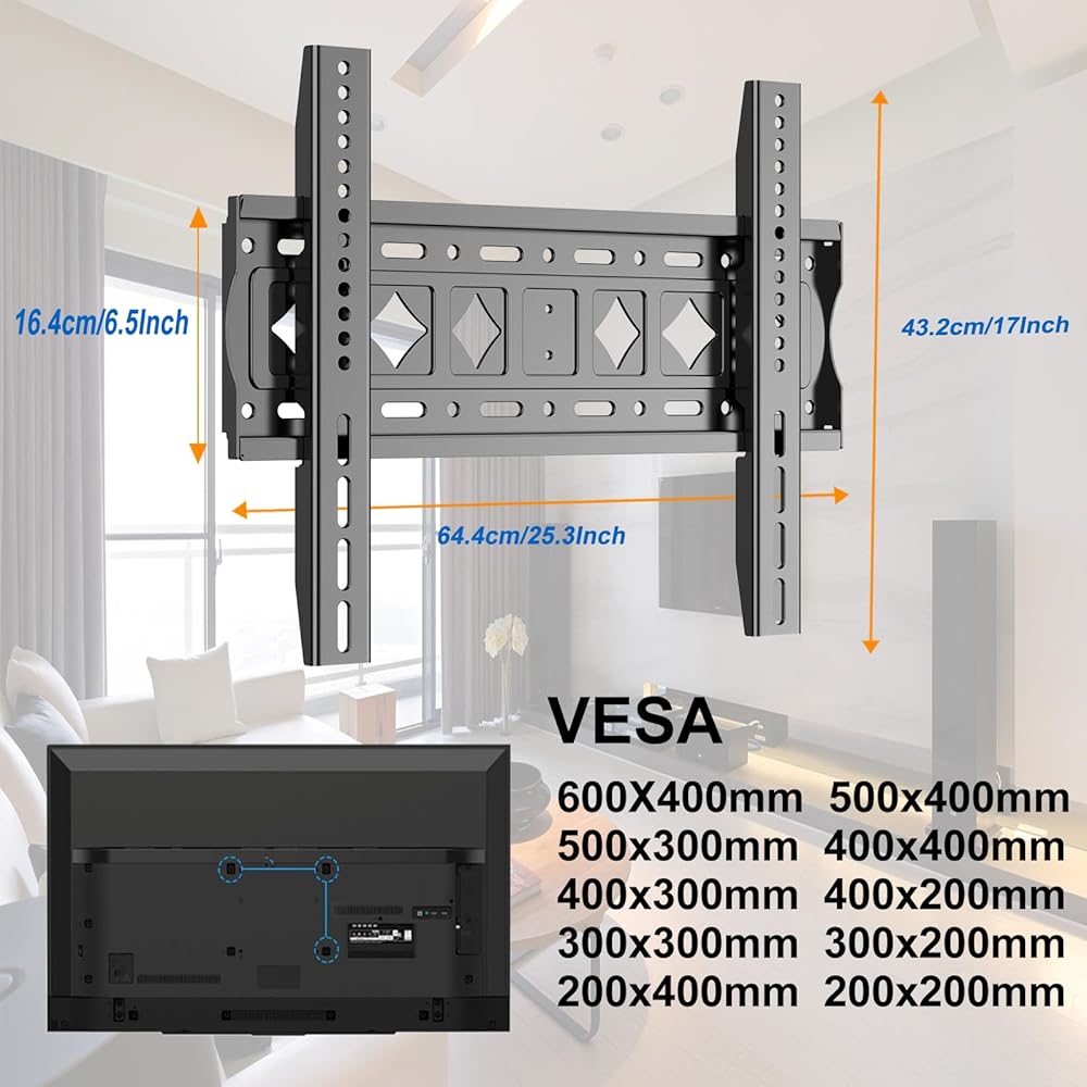Universal TV WALL MOUNT: Our TV wall mount fits for your valuable 32-75 inch flat/curved TVs, like general 32,37, 42, 43, 50, 55, 62, 70 inches TVs. VESA from 200x200mm to 600x400mm.