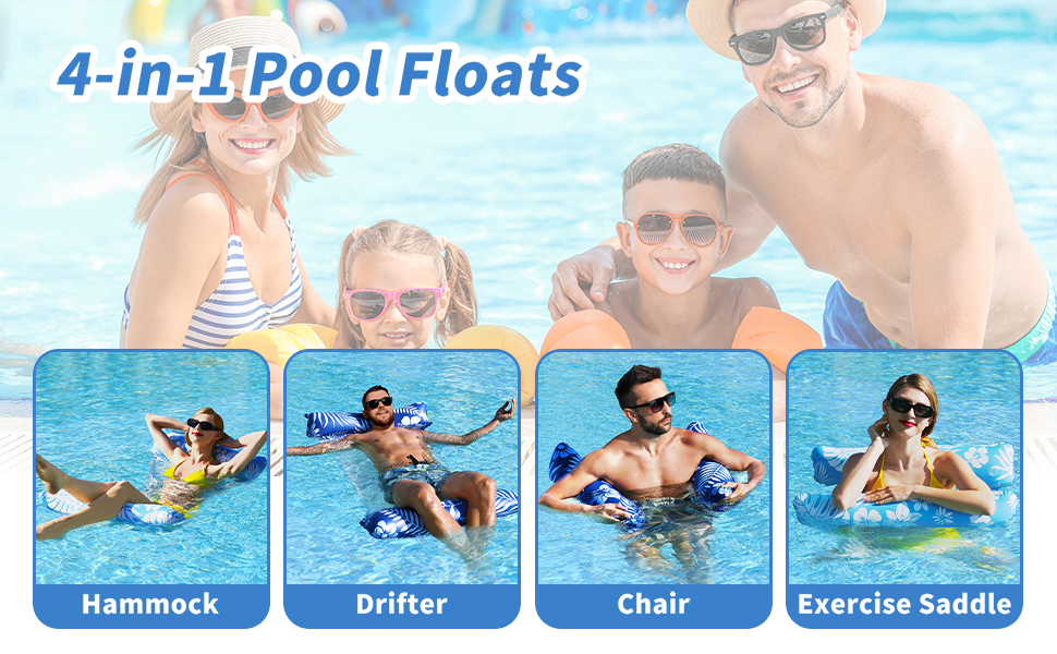 Pool Floats - This multi-functional pool floats can be used as a pool hammock, pool float, lounge chair, drifter. One pool tool brings you various enjoyment experiences. Perfect for swimming pool, beach, ocean, lake, and river.