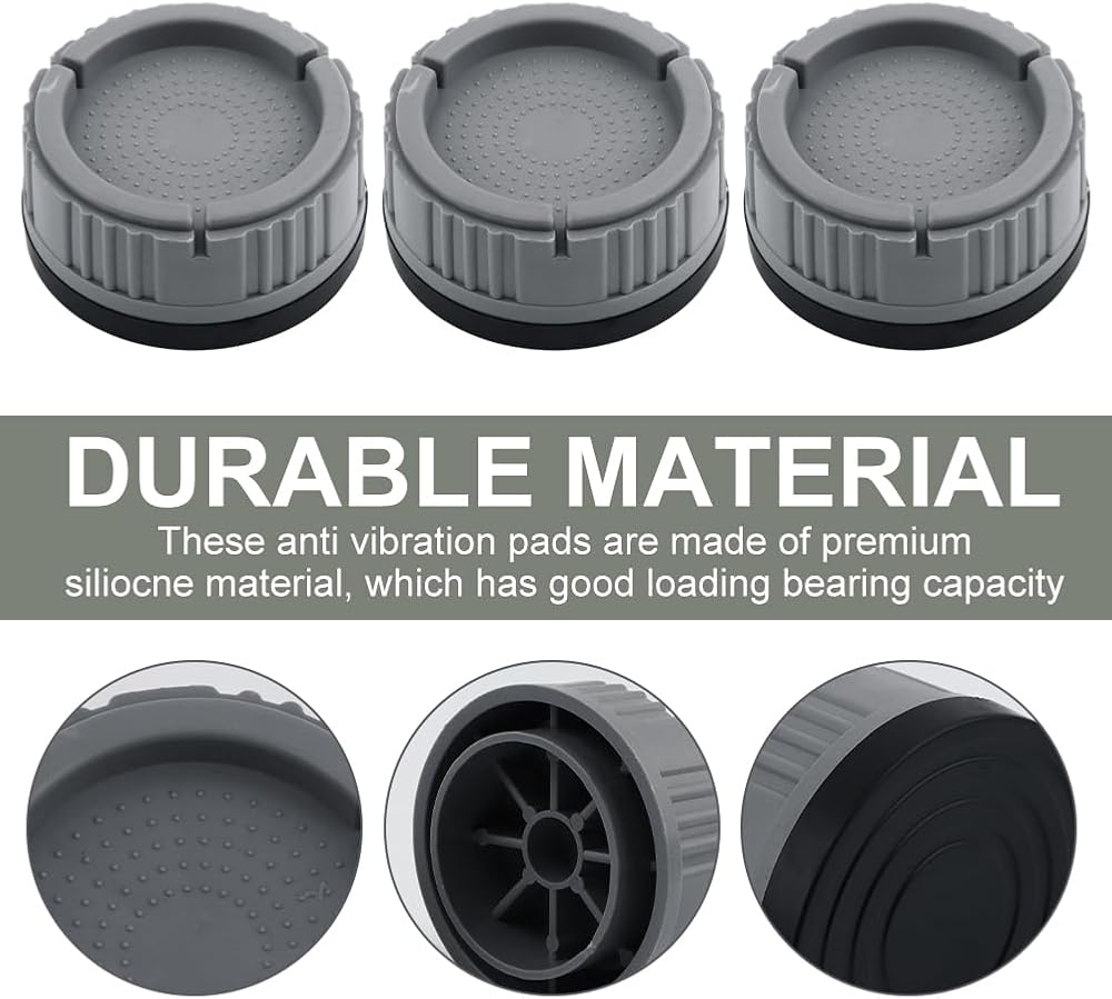 • 【UNIQUE DESIGN】The groove protruding design can effectively increase the friction force, hold the washing machine feet tightly, anti-skid and shockproof, not easy to fall off, so that your machine will no longer shake and make noise.