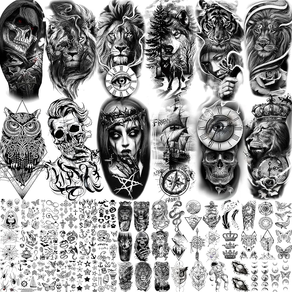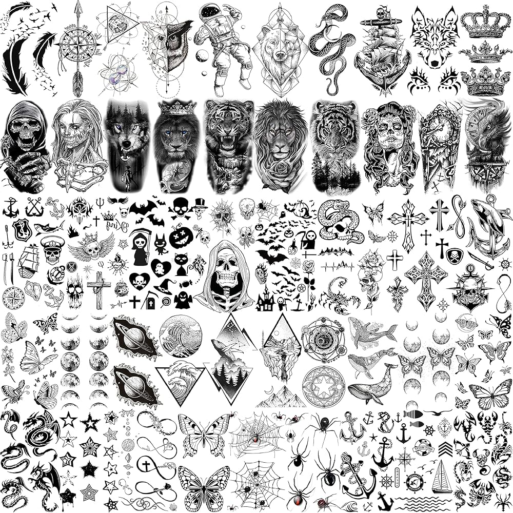 Size: There Are 12 Sheets 21x11.5CM 8.2"x4.5" Large Temporary Tattoos For Men and 47 Sheets 10.5x6CM 4.1"x2.3" Fun Cute Tiny Small Temporary Tattoos For Women In Each Package.
