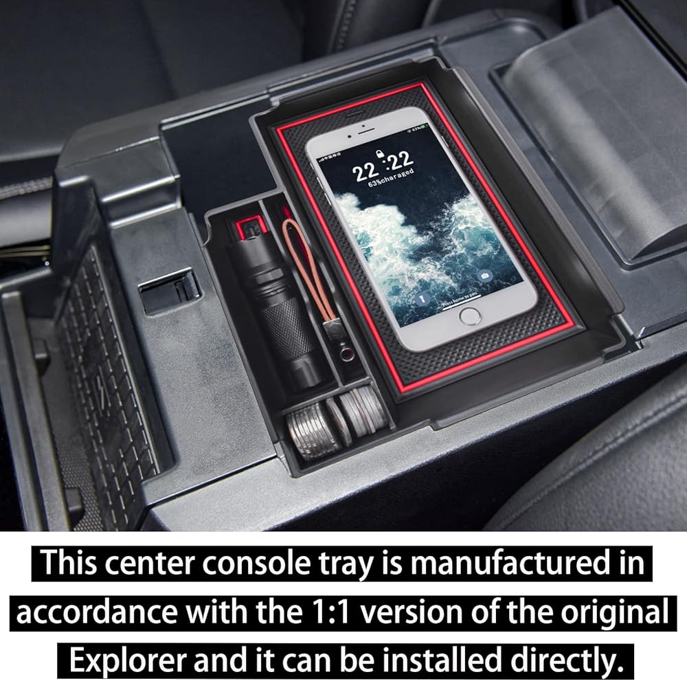• [Meticulously Crafted] : This armrest organizer tray is manufactured in a 1:1 scale of the original Explorer's center console, so it doesn't rattling or making annoying noises when stopping, accelerating or decelerating.