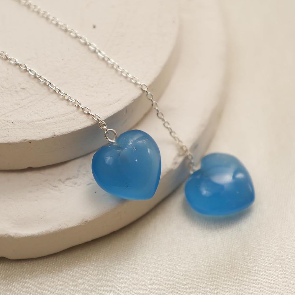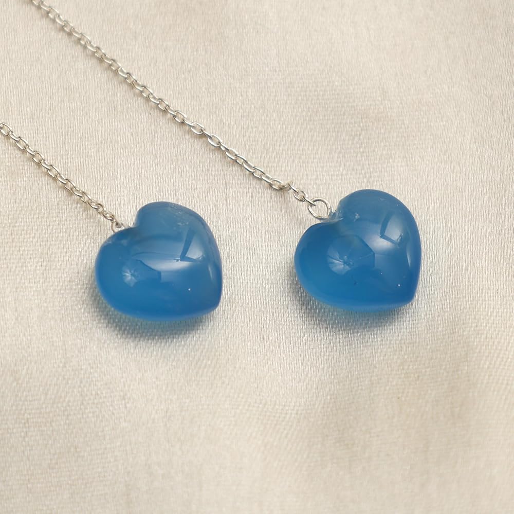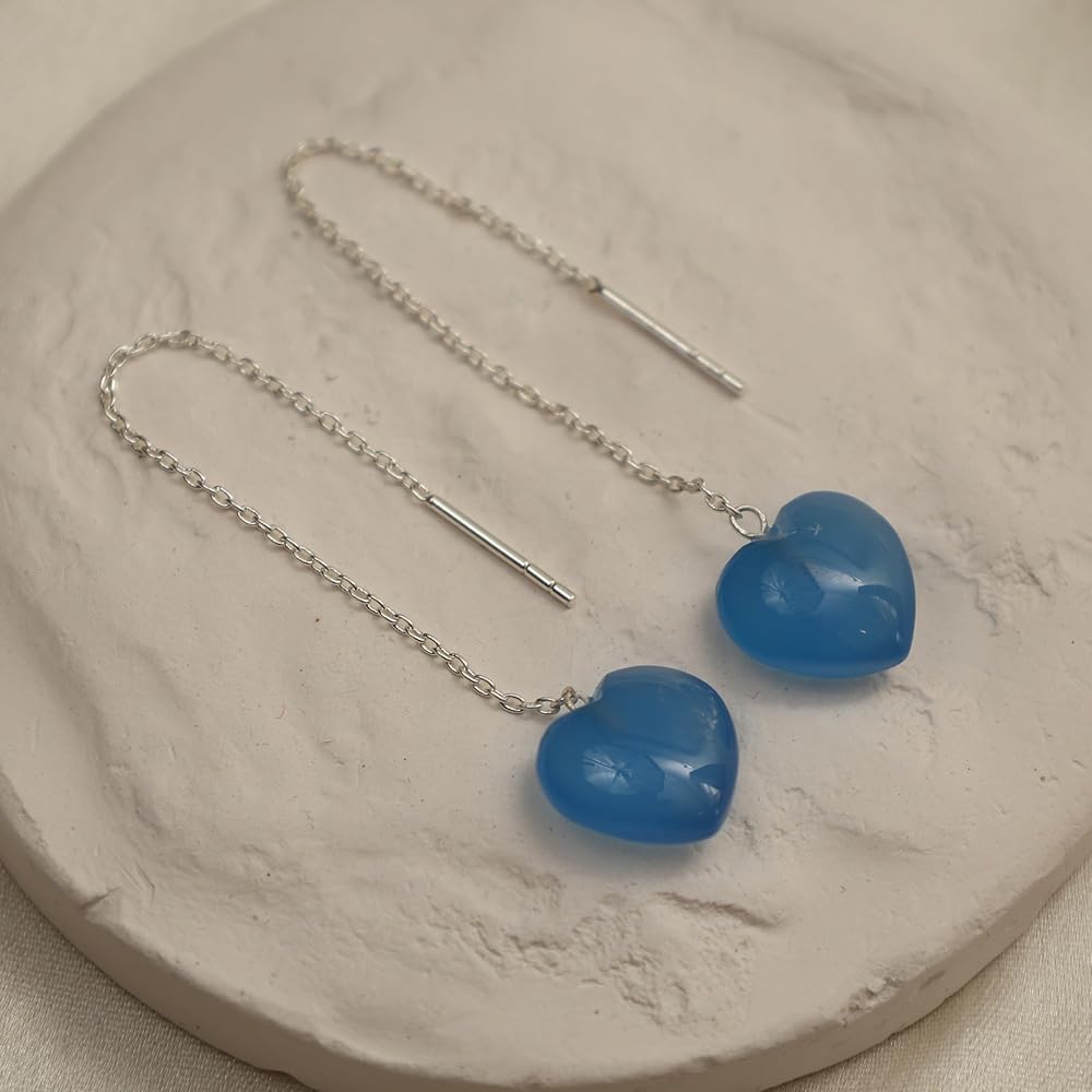 925 Sterling Silver Blue Onyx Heart Threader Earrings Long Pull-Through Gemstone Earrings Dangle Drop Jewelry Hypoallergenic Party Wear Gift for Loved Ones (Blue Onyx)