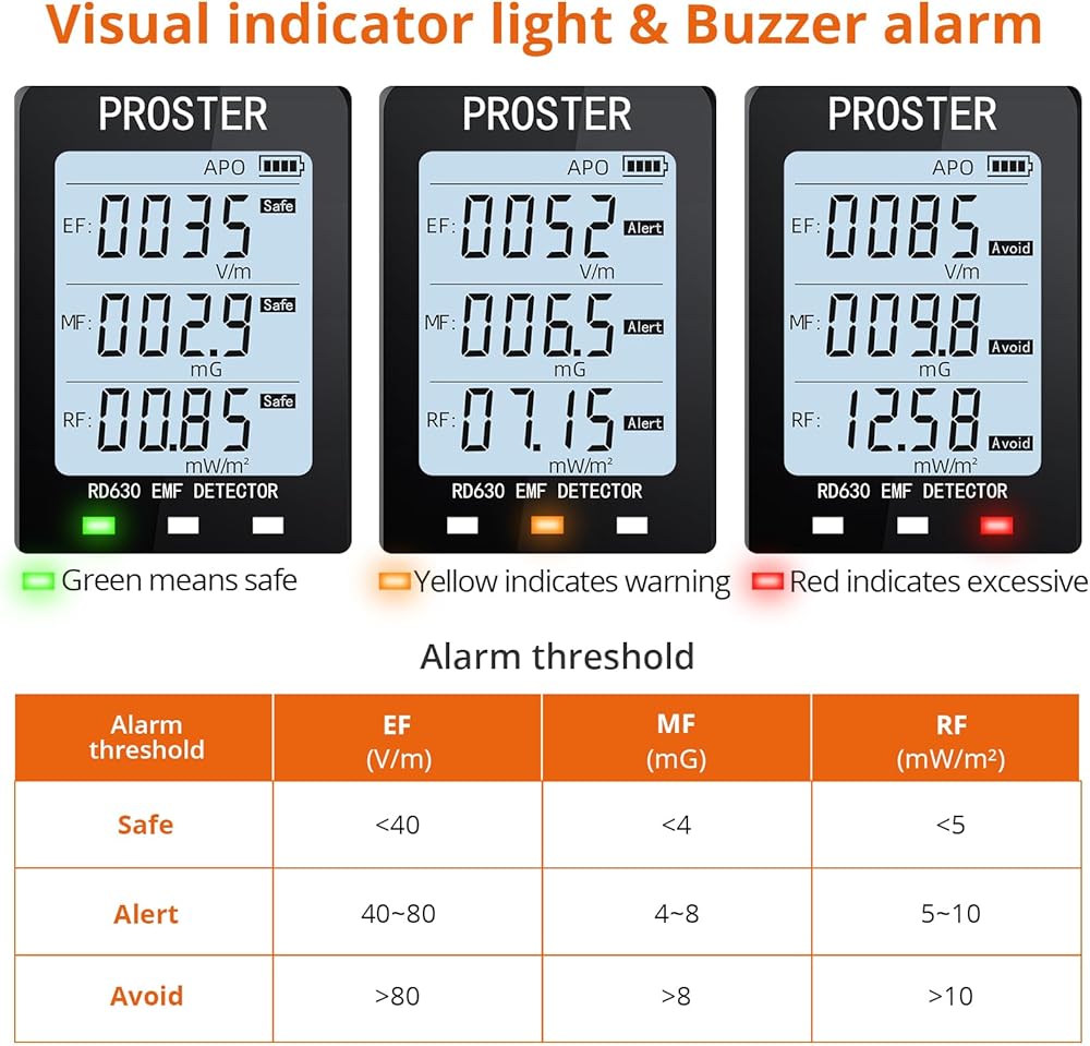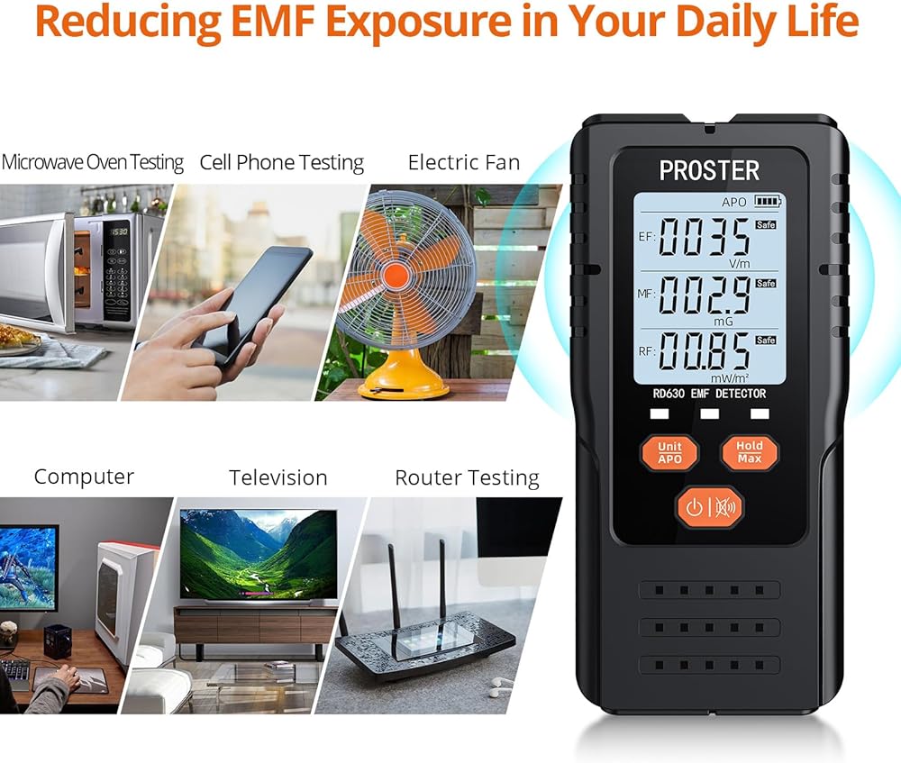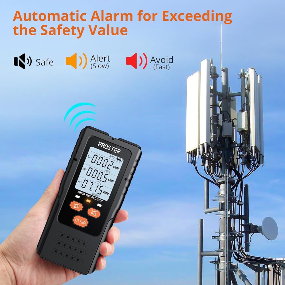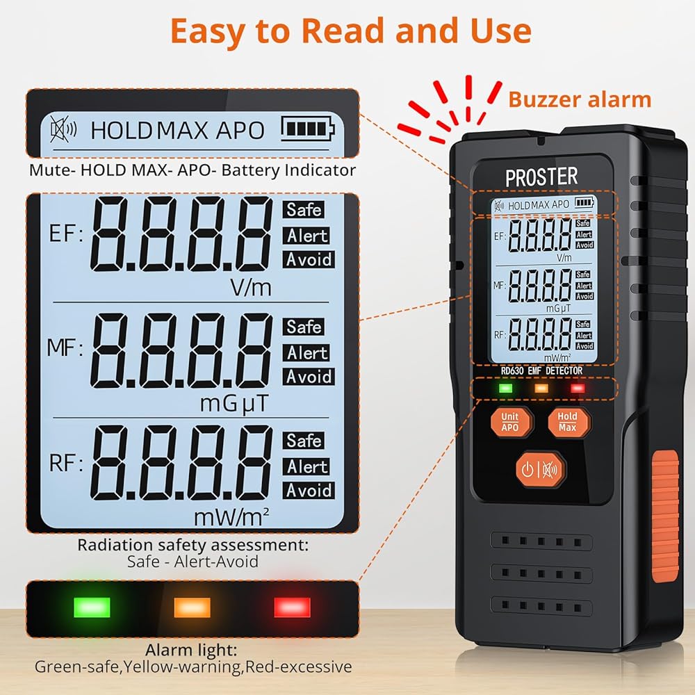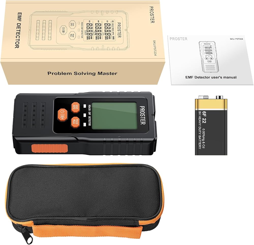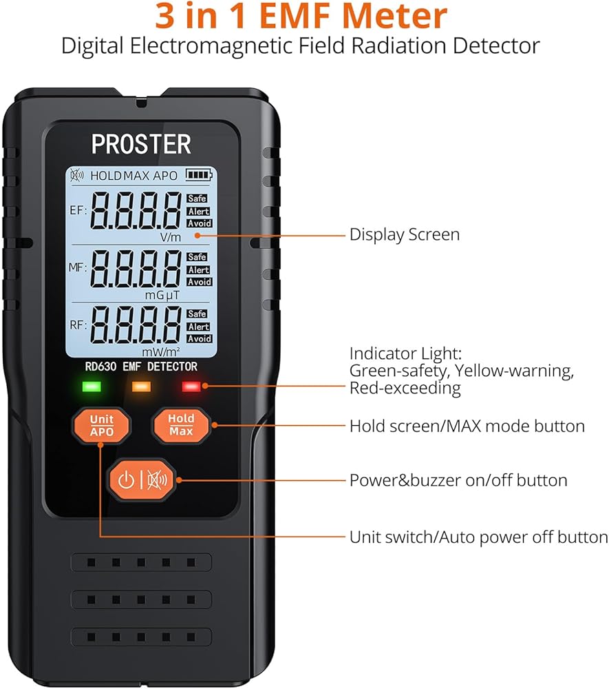 Proster 3in1 EMF Meter - Digital Electromagnetic Field Radiation Detector for 5G Cell Tower WiFi Signal Detector Home Office EMF Inspections or Ghost Hunting