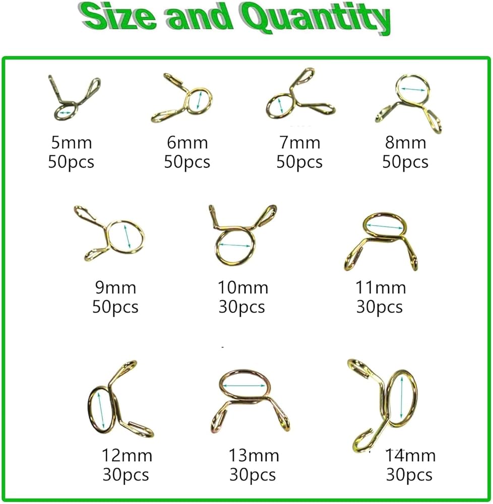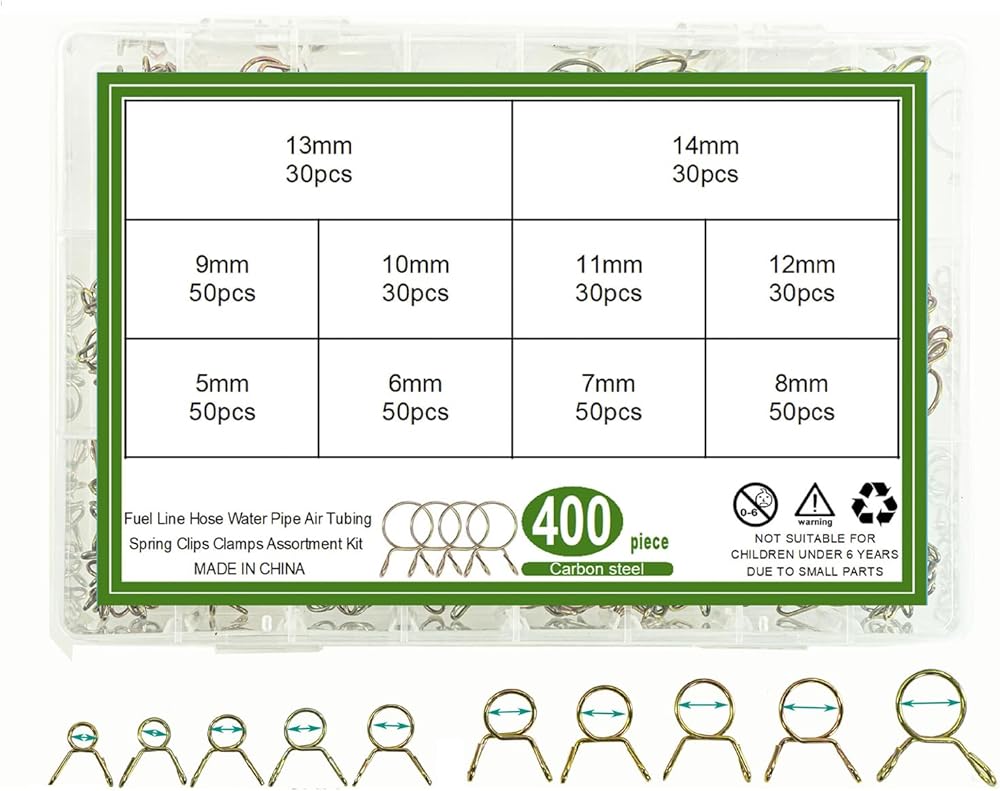 400Pcs Fuel Line Hose Tubing Spring Clips Clamp Water Pipe Clamps Assortment Kit