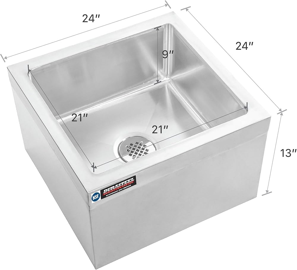 DuraSteel stainless steel floor mount mop sink features finely finished commercial grade stainless steel material, which makes the inner surface tough enough against possible damages by sand, harsh material and dirt. Our engineering team has designed the sink floor in the way that it can drain the dirt water quick with minimum amount of water used for cleaning and rinsing. You can use this stainless steel mop sink in commercial places as well as homes. Furthermore, you can wash and rinse a majority of sport equipment, outdoor travelling goods or even your pet. The inner sink design lets dirt water drains quick and without leaving traces of dirt.